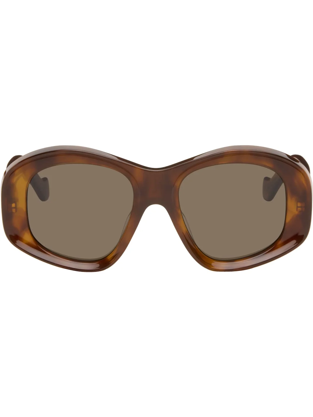 Pentagon-shaped tortoiseshell acetate-frame sunglasses. · Brown lenses · 100% UVA/UVB protection, category 3 · Integrated nose pads · Logo hardware at temples · Includes case · Size: 51.19 140 Supplier color: Havana Acetate. Made in Italy 261677F005022