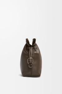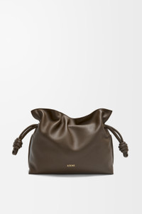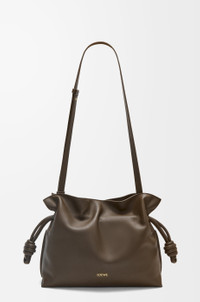 The Flamenco clutch is a soft and slouchy bag with a cinched closure and historical knot drawstrings. This medium version is crafted in nappa calfskin. - Shoulder, crossbody or hand carry - Detachable and adjustable strap - Magnetic closure - Suede lining - Gold or silver embossed LOEWE Colour: Chocolate Metallic colour: Gold Main material: Nappa Calf Strap length: 96-120 cm Strap drop: 38 - 44 cm Weight: 0.5 kg Height: 24.5 cm Width: 30 cm Depth: 10.5 cm Made in: Spain
