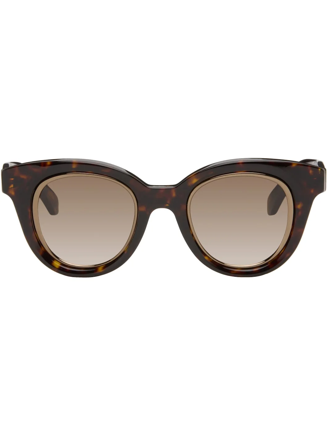 Rectangular tortoiseshell acetate-frame sunglasses. · Brown gradient lenses · 100% UVA/UVB protection · Metal trim at lenses · Integrated nose pads · Logo stamp at temples · Includes pouch · Size: 51.20 140 Supplier color: Dark Havana/Gradient Acetate. Made in Italy 261677F005015
