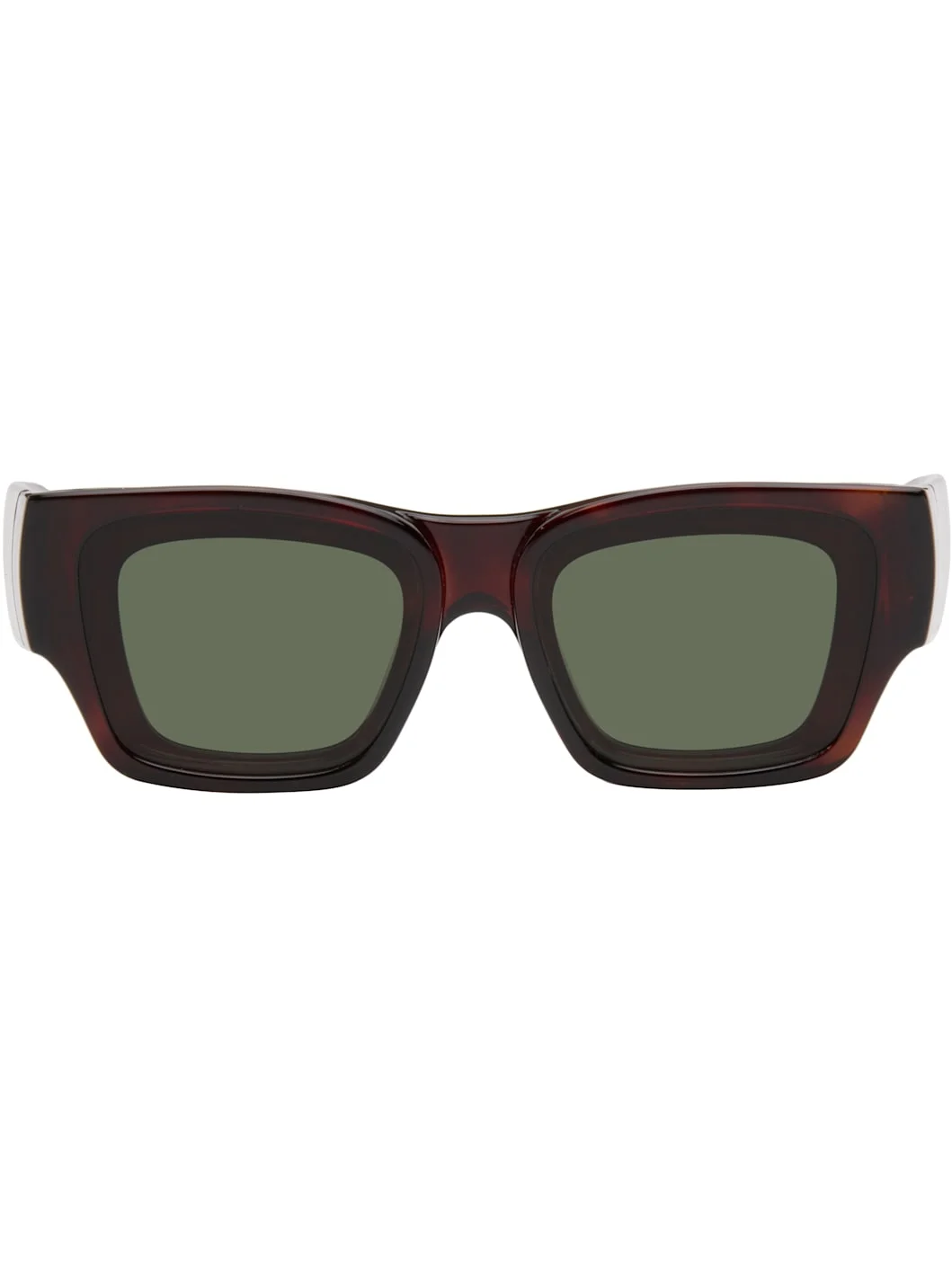 Rectangular tortoiseshell acetate-frame sunglasses. · Green lenses · Raised rims · Integrated nose pads · Inset logo at temples and temple tips · Includes pouch · Size: 56.16 140 Part of the Loewe Paula's Ibiza capsule collection. Supplier color: Dark Havana/Green Acetate. Made in Italy 252677F005006