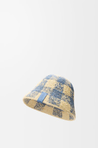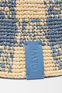 Bucket hat in raffia featuring an allover check pattern. - Embossed LOEWE calfskin tab Colour: Natural/Light Blue Main material: Raffia Weight: 0.14 kg