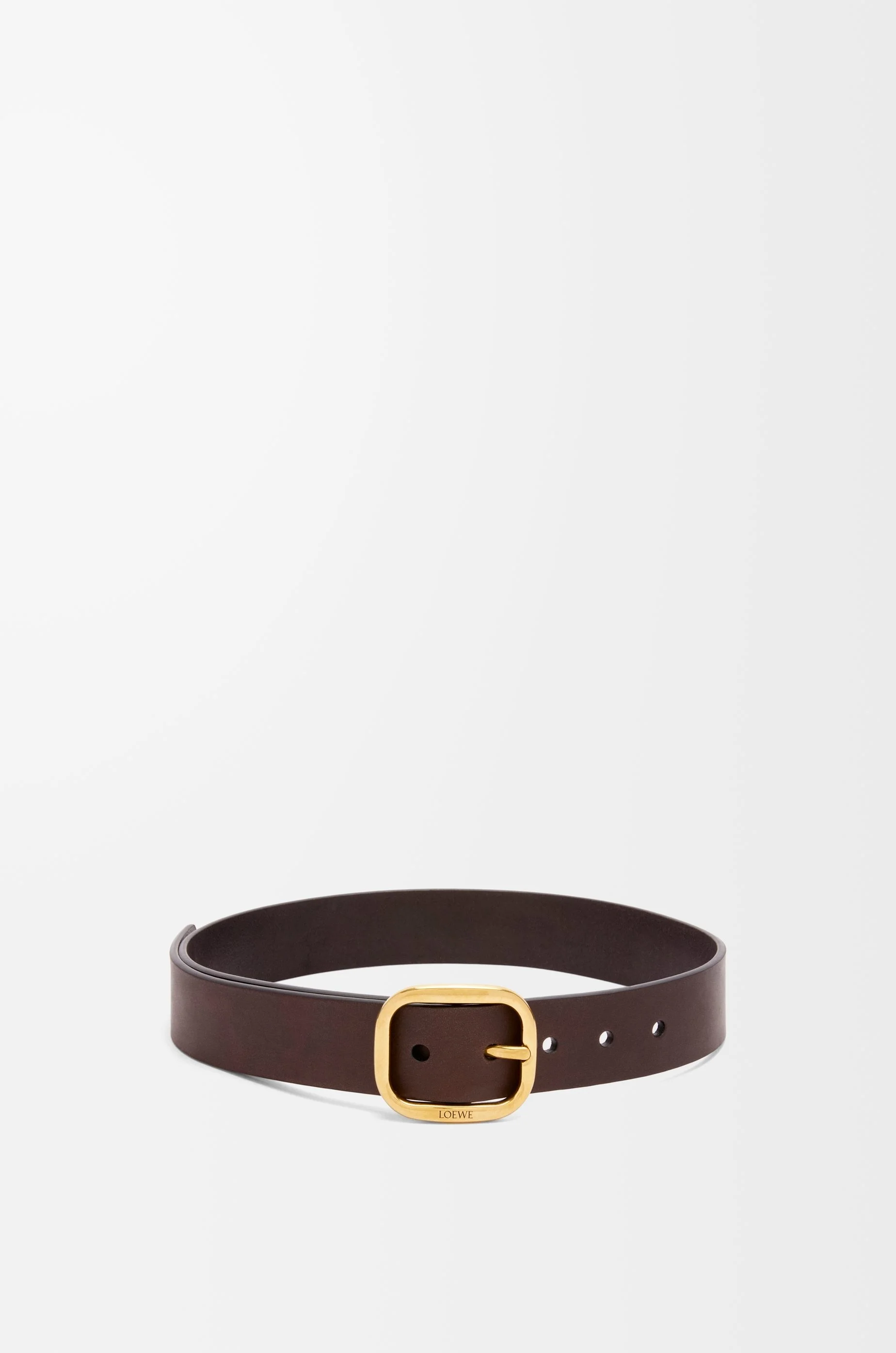 Rounded soft belt in vegetable-tanned calfskin. Due to its treatment, this leather will age naturally and develop a unique patina over time. - Rounded buckle - Pin buckle - 3.5cm wide - Five holes regulation - Engraved LOEWE Details - Colour : Dark Brown - Metallic colour : Gold - Main material : Classic Calf - Weight : 0.2 kg - Depth (cm) : 3.5 - Depth (inch) : 1.4 - Model ID : E619Z20X65 - Made in : Spain