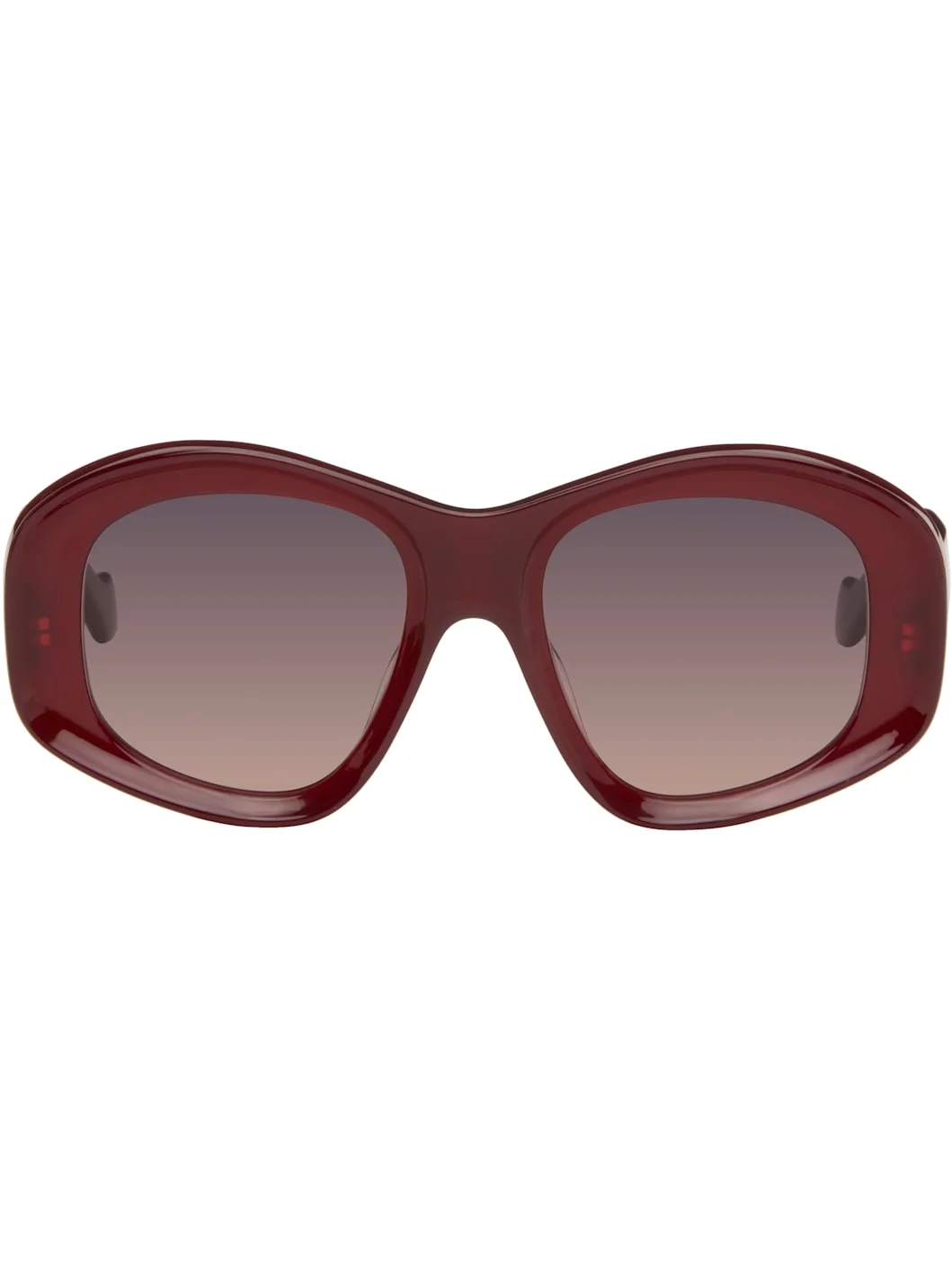 Round semi-transparent acetate-frame sunglasses. · Purple gradient lenses · 100% UVA/UVB protection · Integrated nose pads · Logo hardware at temples · Core wires · Includes pouch · Size: 51.19 140 Supplier color: Milky Burgundy Acetate. Made in Italy 261677F005021