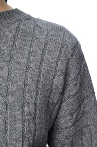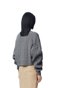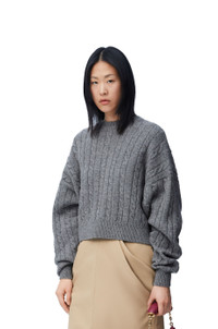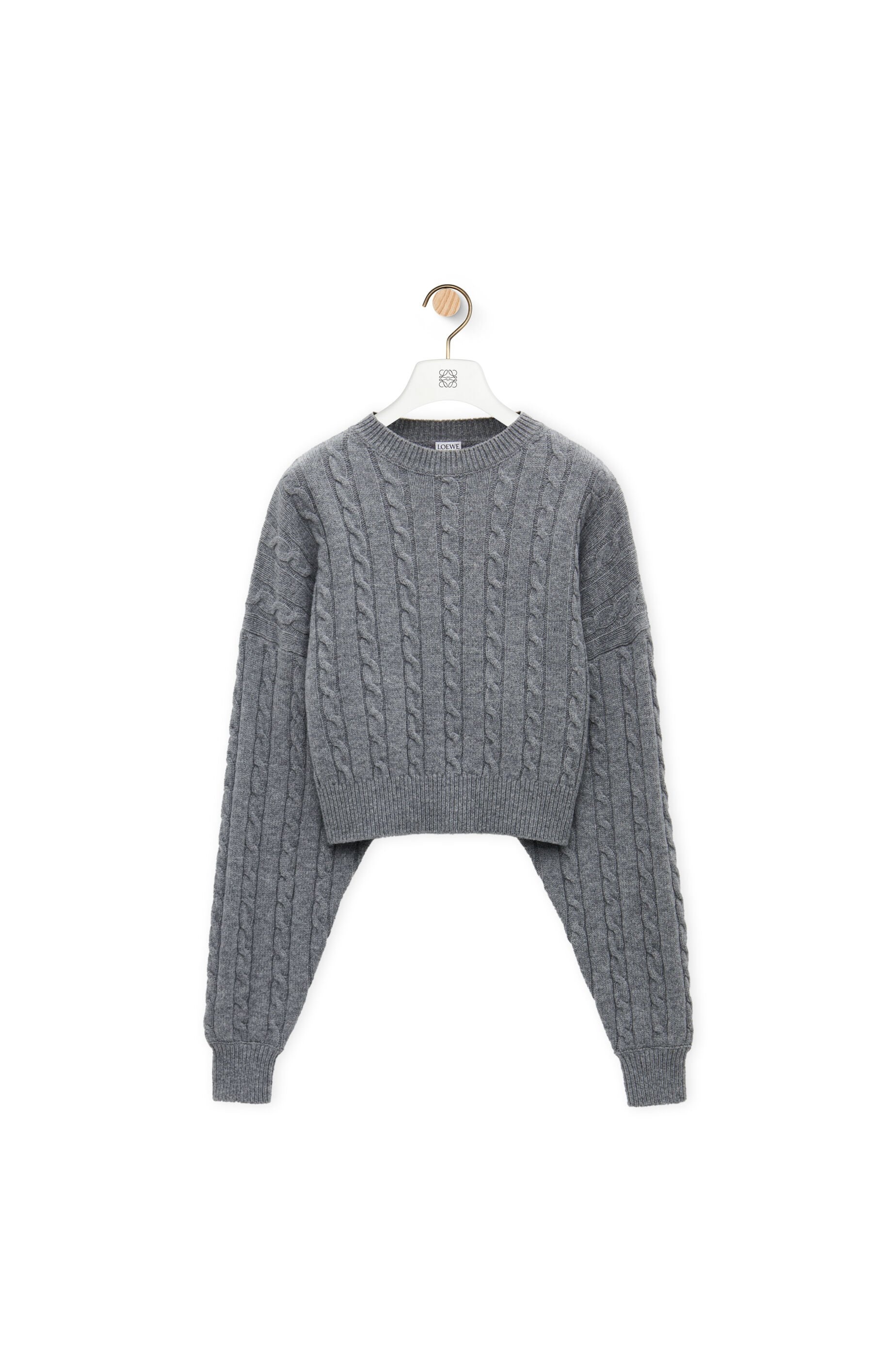Sweater crafted in medium-weight cable wool knit. - Hand knitted - Relaxed fit - Short length - Round neck - Ribbed collar, cuffs and hem - Dropped shoulders - LOEWE Anagram rubber patch placed at the back Details - Colour : Grey Melange - Main material : Wool - Weight : 0.35 kg - Model ID : S359Y14KFL - Made in : Italy