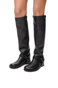 Biker high boot in soft calfskin, featuring hardware details and Anagram embossed loops on the side for an easy step-in. - 30mm heel - Goodyear construction - Leather insole and outsole Details - Colour : Black - Main material : Soft Calf - Heel height : 3 - Weight : 1.618 kg - Model ID : LLSC285X03 - Made in : Italy