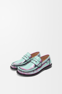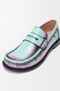 Campo loafer in brushed calfskin featuring the LOEWE signature round toe shape, defined by a bulky asymmetrical look. - Leather outsole and extra padded leather insole Details - Colour : Mint/Pink/Forest Green - Main material : Brush-off Calf - Heel height : 0.7 - Weight : 0.8 kg - Model ID : LLSC290X23 - Made in : Italy