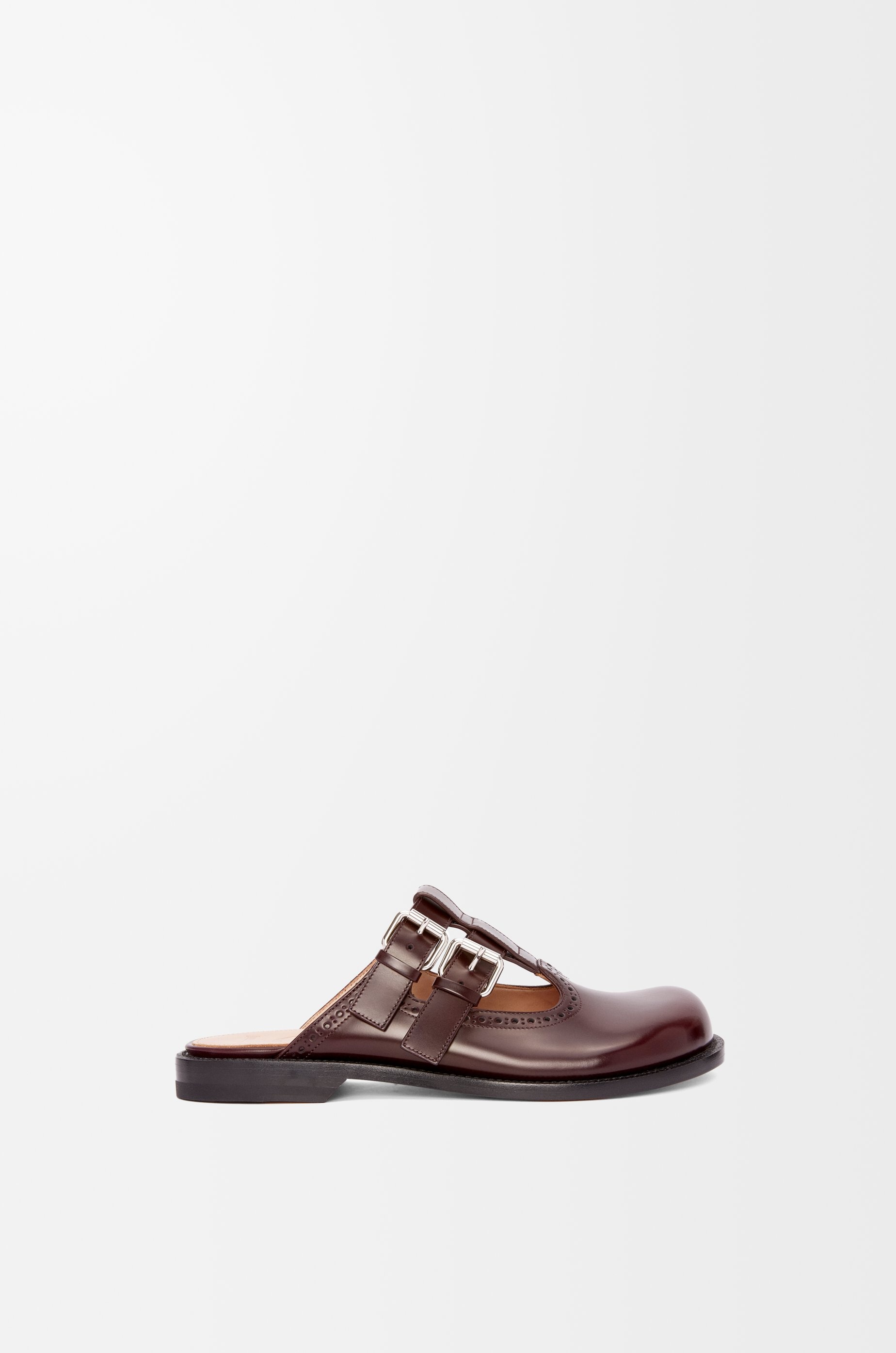 Mary Jane mule crafted in brushed calfskin featuring the LOEWE signature asymmetric round toe shape. Key features include double buckle closure and classic brogue details. - Buckle fastening - Leather outsole and insole Details - Colour: Burgundy - Main material: Brushed Calf - Heel height: 2 - Weight: 0.6 kg - Model ID: L815379X83 - Made in: Italy
