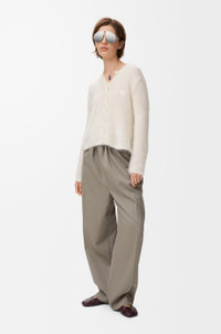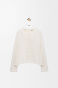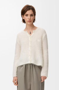 Cardigan in medium-weight mohair blend featuring a trapeze silhouette and button fastening at the front and back. - Regular fit, short length - Round neck - Anagram embroidery placed on the chest Colour: White Main material: Wool/Mohair/Polyamide Weight: 0.4 kg Made in: Italy Materials & care Main Material: 65% mohair 29% polyamide 5% wool 1% elastane