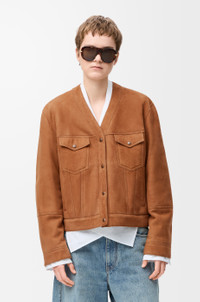 Cardigan in lightweight curly merino shearling. - Regular fit, regular length - V-neck - Snap button front fastening and cuffs - Buttoned chest flap pockets, vertical jet pockets - LOEWE embossed leather patch placed at the back Colour: Toffee Main material: Shearling Weight: 1.1 kg Made in: Italy