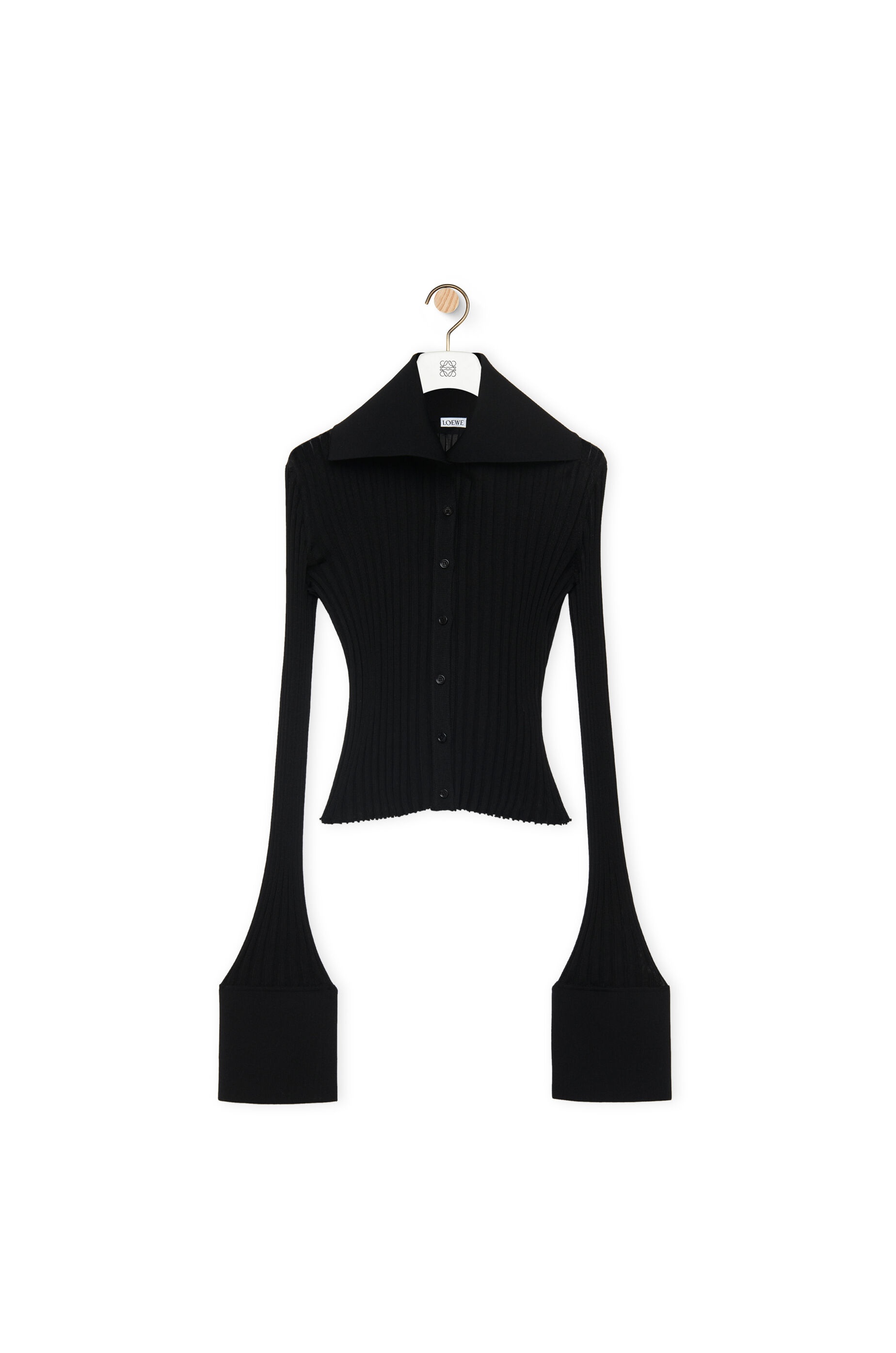 Cardigan crafted in lightweight ribbed viscose knit. - Slim fit - Short length - Wide collar - Large cuffs with Anagram charm - Button front fastening Details - Colour: Black - Main material: Viscose - Weight: 0.3 kg - Model ID: S359Y16K36 - Made in: Italy