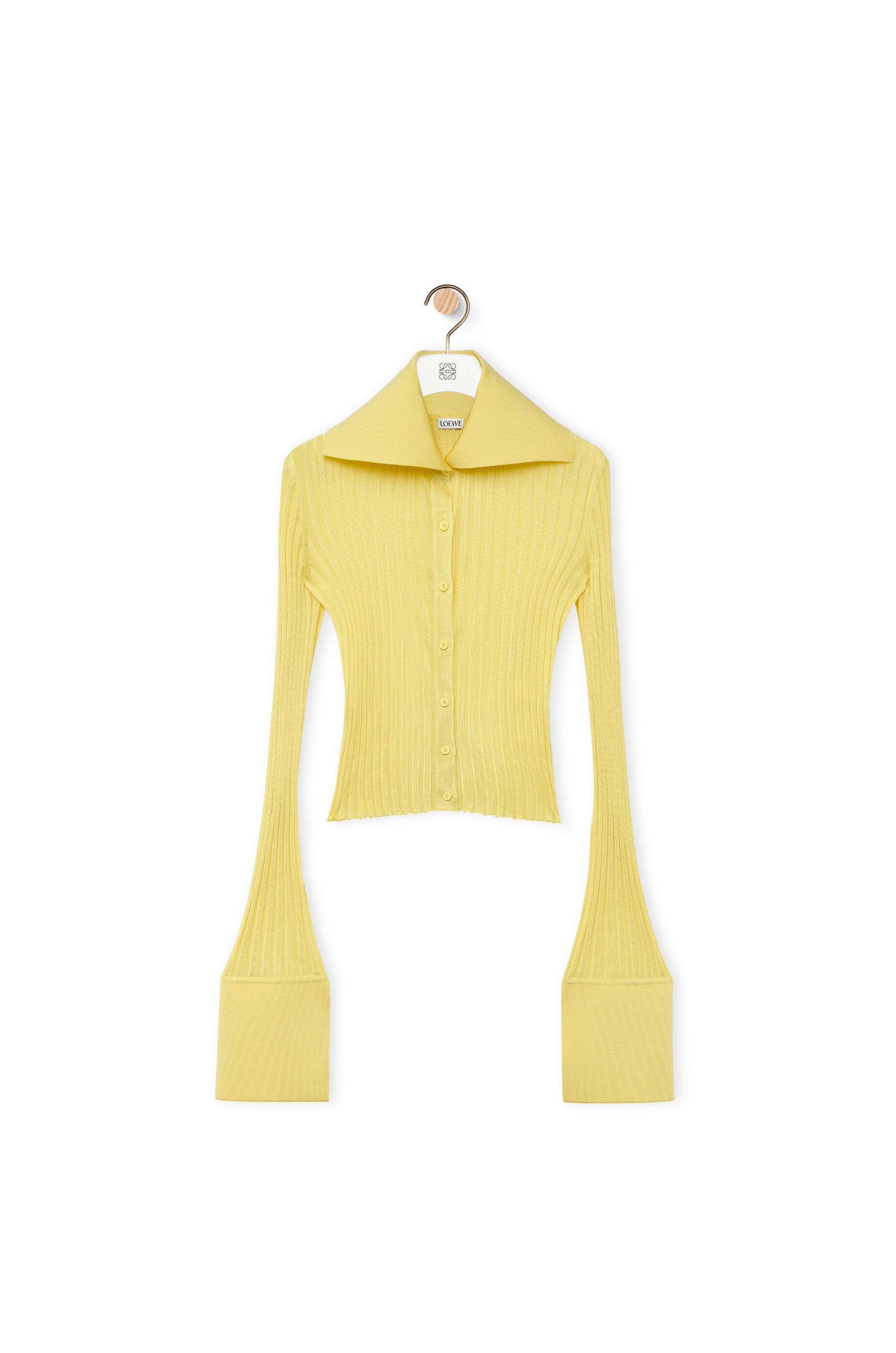 Cardigan crafted in lightweight ribbed viscose knit. - Slim fit - Short length - Wide collar - Large cuffs with Anagram charm - Button front fastening Details - Colour: Acid Yellow - Main material: Viscose - Weight: 0.3 kg - Model ID: S359Y16K36 - Made in: Italy