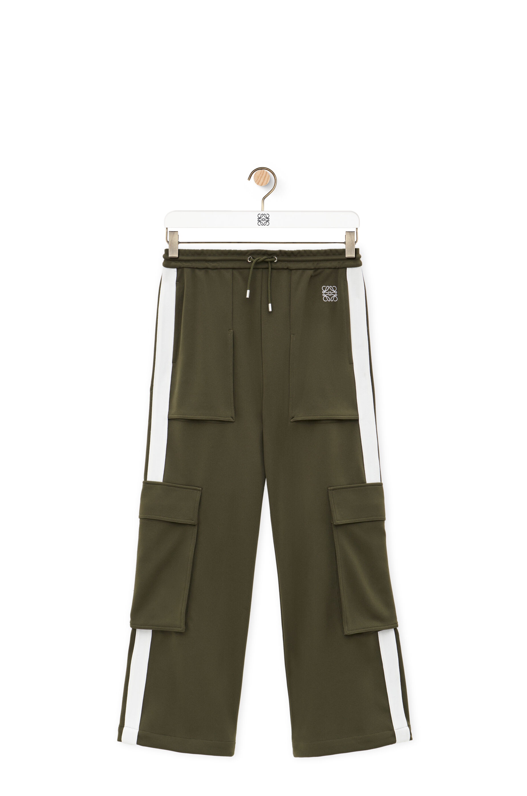 Trousers crafted in medium-weight technical jersey. - Regular fit - Regular length - Low waist - Loose leg - Elasticated waistband with drawstring - Welt pockets - Cargo pockets on the legs - Rear flap pockets with concealed snap buttons - Herringbone tape at the sides - Anagram embroidery placed at the front Details - Colour : Tea Dust Glaze - Main material : Polyester - Weight : 0.5 kg - Model ID : S359Y04XEE - Made in : Portugal