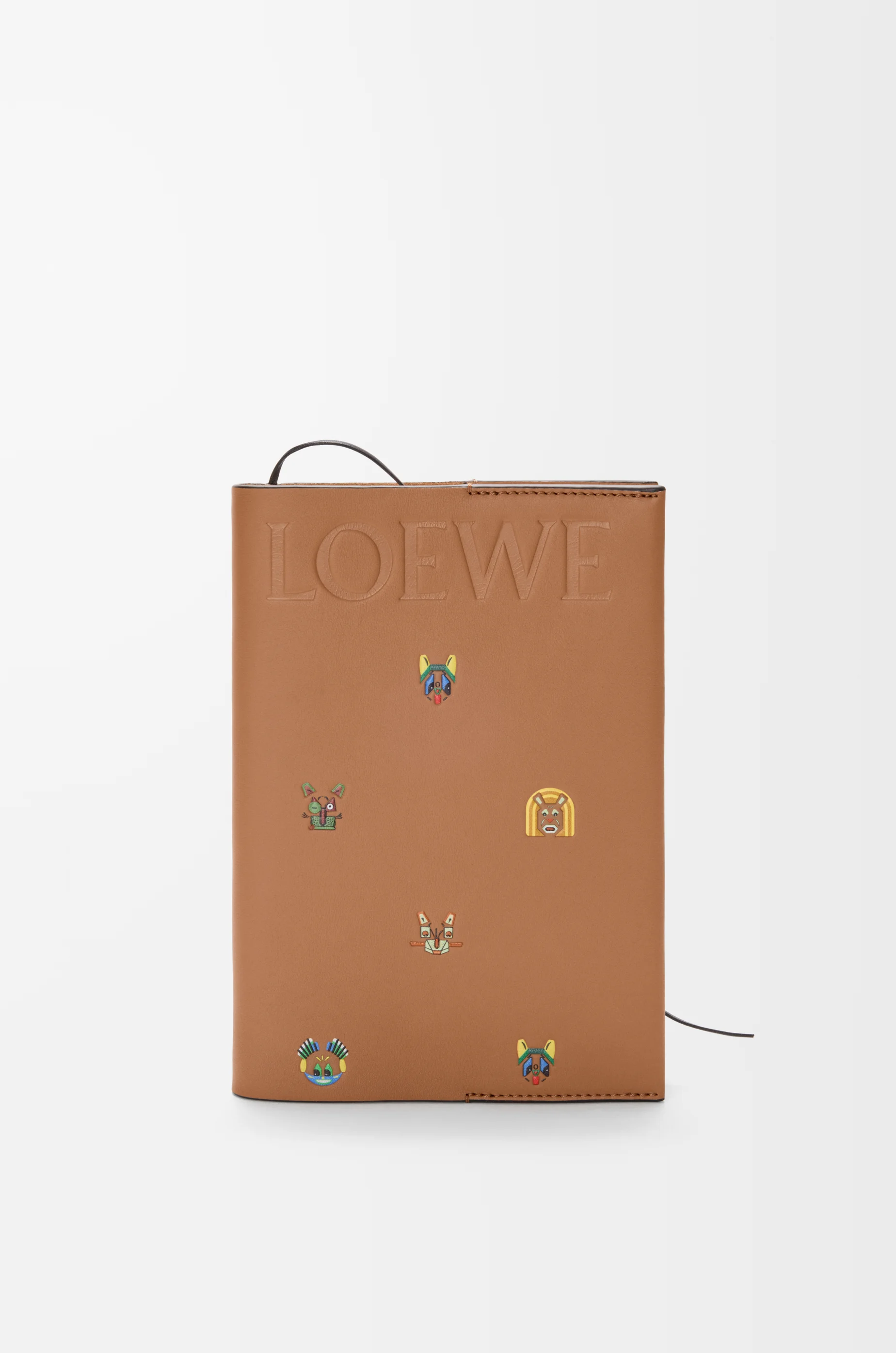 Notebook in calfskin with allover cat motifs on the cover. This notebook is inspired by Louis Wain's "Futurist Cats" porcelain vase series. - A5 format - Embossed LOEWE Colour: Mocha Main material: Leather Weight: 0.4 kg Height: 21 cm Width: 15 cm Depth: 1 cm Made in: Spain