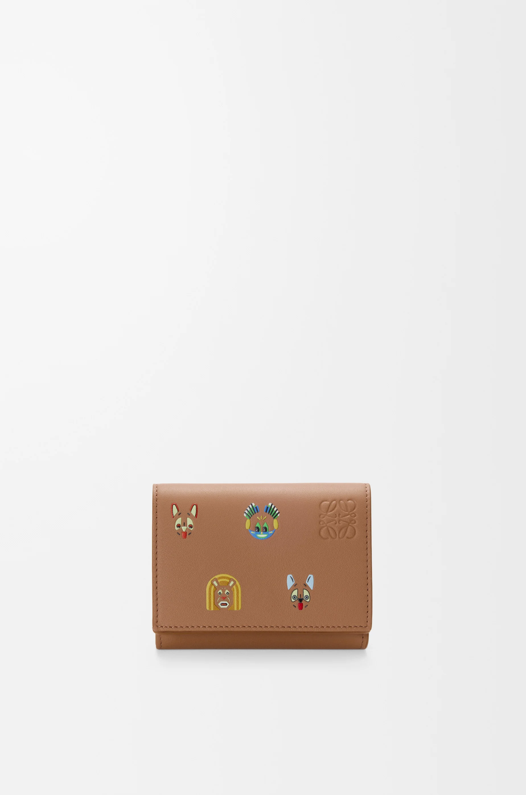 Trifold wallet in classic calfskin featuring allover 3D-effect cat prints. This wallet is inspired by Louis Wain's "Futurist Cats" porcelain vase series. - Six card slots, one large pocket - Coin compartment with snap button closure - Snap button closure - Calfskin lining - Embossed Anagram Colour: Mocha Metallic colour: Palladium Main material: Classic calf Weight: 0.106 kg Height: 7.8 cm Width: 10.2 cm Depth: 3.8 cm Made in: Spain