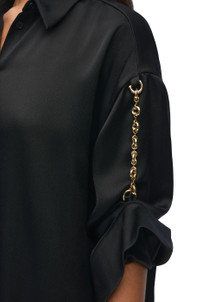 Chain shirt dress crafted in medium-weight silk satin. - Relaxed fit - Short length - Removable donut chains at the sleeves - Classic collar - Long sleeves - Buttoned cuffs - Concealed button front fastening - Wide box pleat at the back Details - Colour: Black - Main material: Silk - Weight: 0.4 kg - Model ID: S359Y09XDB - Made in: Italy