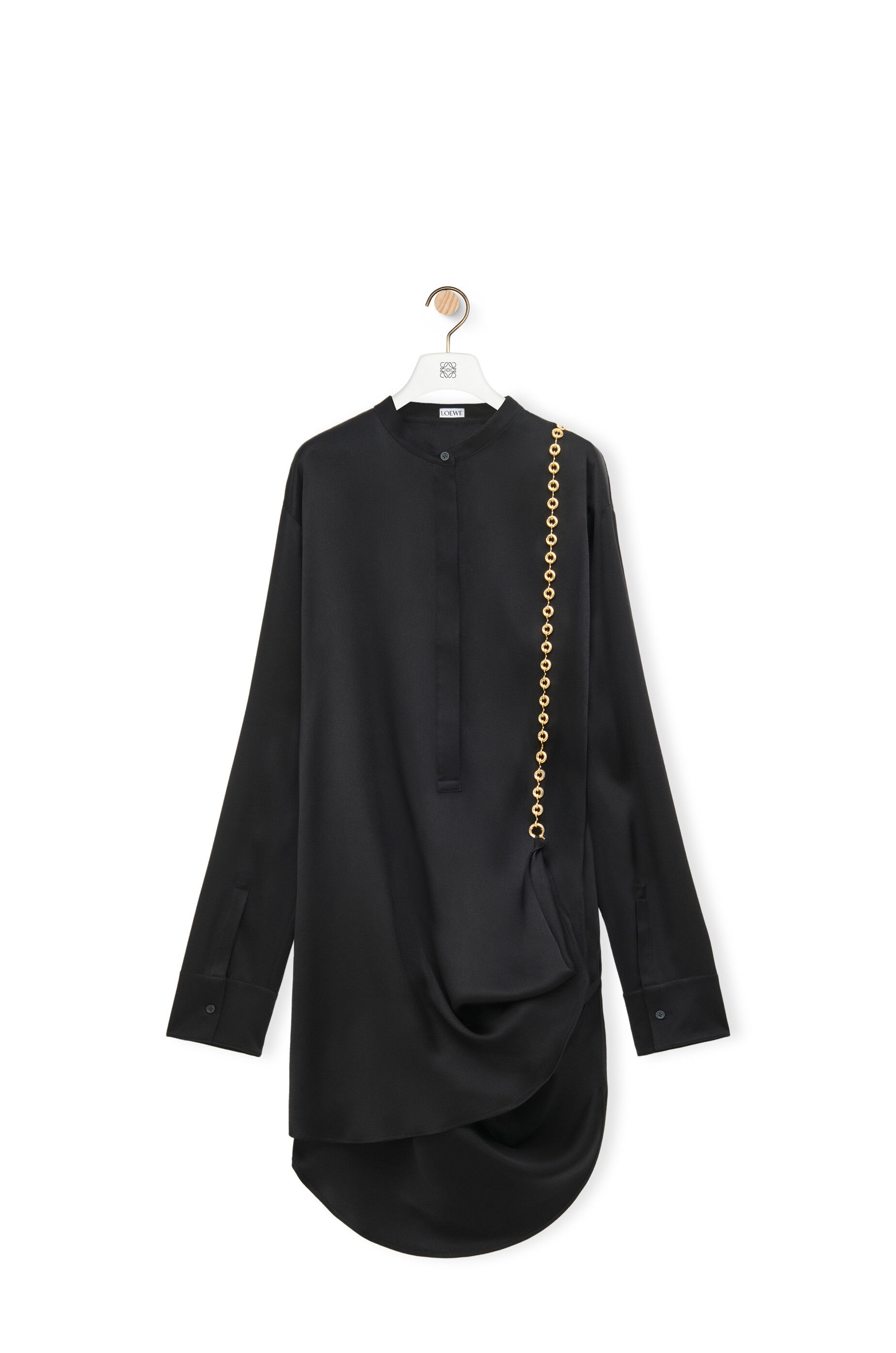 Dress crafted in medium-weight soapy silk satin. - Relaxed fit - Short length - Draped silhouette - Detachable metal donut chain - Stand collar - Buttoned cuffs - Concealed button front fastening - Asymmetric hem Details - Colour: Black - Main material: Silk - Weight: 0.6 kg - Model ID: S540Y09XKL - Made in: Italy