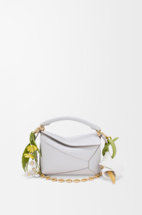 Charm in classic calfskin and brass with chamomile flowers and leaves. - Hoop fastening - Engraved Anagram Colour: Yellow/Green Metallic colour: Gold Main material: Classic Calf Weight: 0.028 kg Width: 10.5 cm Depth: 5 cm Made in: Spain