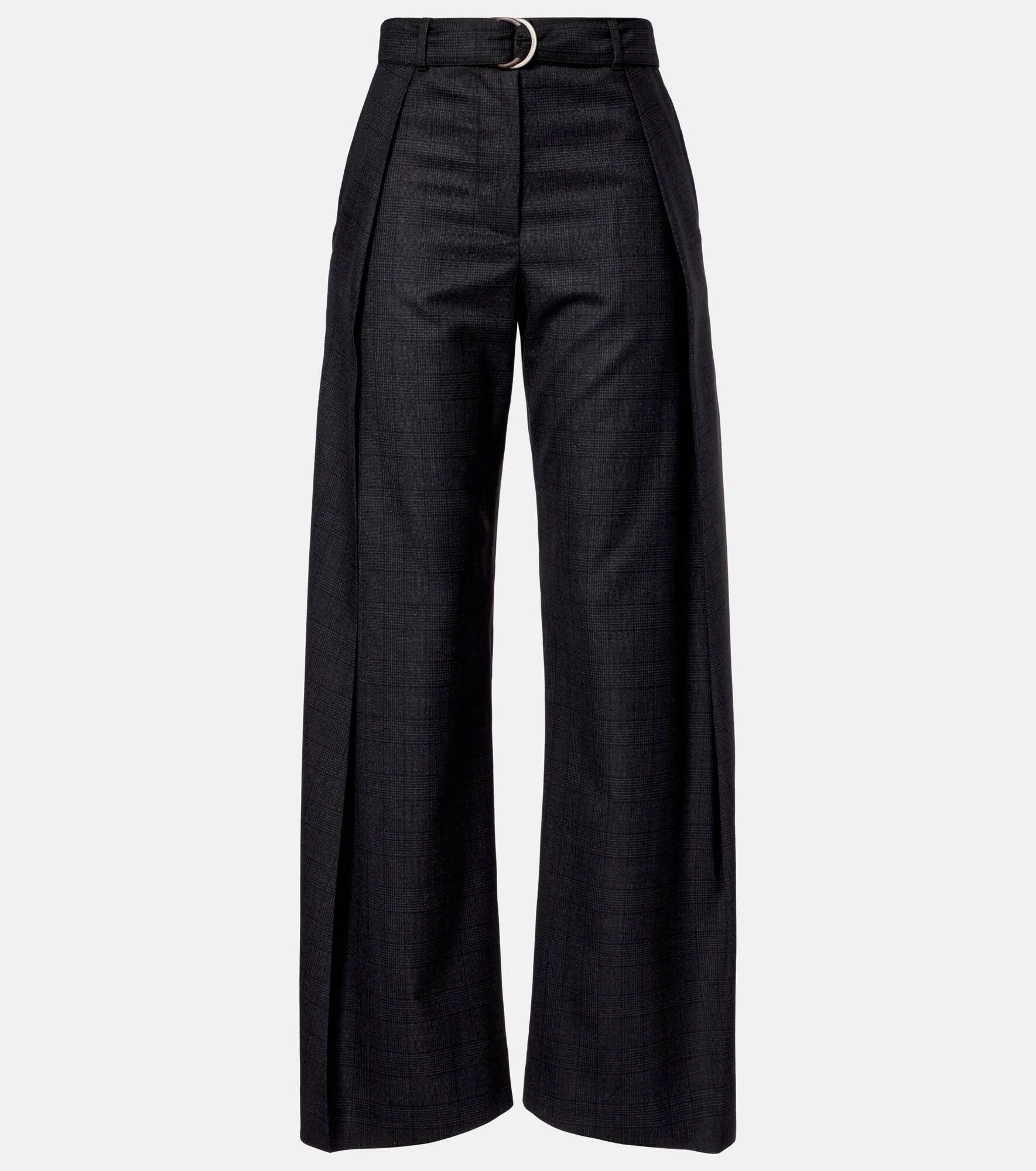 Founded in 1846 as a leathermaking company, Loewe maintains a commitment to art and craft of the utmost quality. These pants are cut from wool to a barrel-leg silhouette with a belted waist and a checked motif. Product Details - Material: 100% wool - Care instructions: dry clean - Made in Italy - Color: grey - Designer color name: Dark Grey - Details: 100% calf leather - Material II: 100% cotton - Pocket lining: 100% cotton - Contains non-textile parts of animal origin - Hardware color: silver - Attached belt - Pockets: side slit pockets, back pocket - Closure: zipper fly, button and hook fastenings - Item number: P01118245 Size & Fit - True to size - Non-stretchy fabric - Wide-leg - High-waisted - The model seen in the picture is 178cm-5'10" and wearing a size FR 34