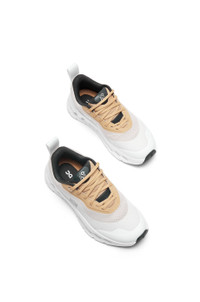 Lightweight sneaker in polyester with an engineered light foam midsole featuring the signature CloudTec® Phase technology for comfortable walking with rubber pods. The Cloutilt 2.0 features an updated mix media upper made from performance mesh and woven textile - LOEWE x On logo on the tongue - Branded back loop for easy step in - LOEWE Anagram on the quarter - Runs small to size, we suggest to order a size up. For more information, please review the size guide. Details - Colour: Tan/White - Main material: Polyester - Heel height: 0.8 - Weight: 0.9 kg - Model ID: L929282X17 - Made in: Vietnam