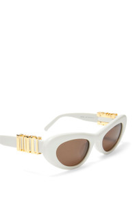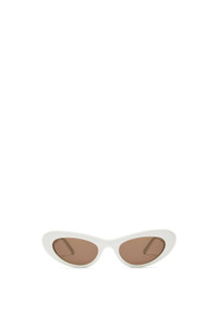 Cateye-shaped sunglasses in a slim acetate construction with a barcode LOEWE on the temple. - Universal fit - 100% UVA/UVB protection - Gold-finish metal LOEWE Details - Colour : Solid White - Main material : Acetate - Weight : 0.05 kg - Lens size (cm) : 5.2 - Lens size (inches) : 2.0 - Bridge size (cm) : 2 - Bridge size (inches) : 0.8 - Temple size (cm) : 14 - Temple size (inches) : 5.5 - Model ID : G735270X10 - CIL : - 0011199296 - Made in : Italy