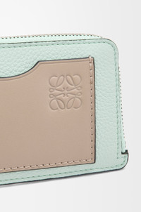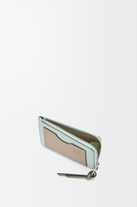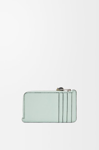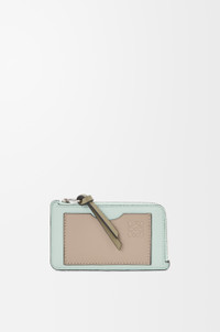 Coin cardholder in soft grained calfskin in contrasting colours with an additional card pocket on the front. - Four card slots - One zipped coin compartment with calfskin pull - Embossed Anagram Colour: Frozen/Clay Metallic colour: Palladium Main material: Soft Grained Calf Weight: 0.05 kg Height: 7.5 cm Width: 13 cm Depth: 1 cm Made in: Spain