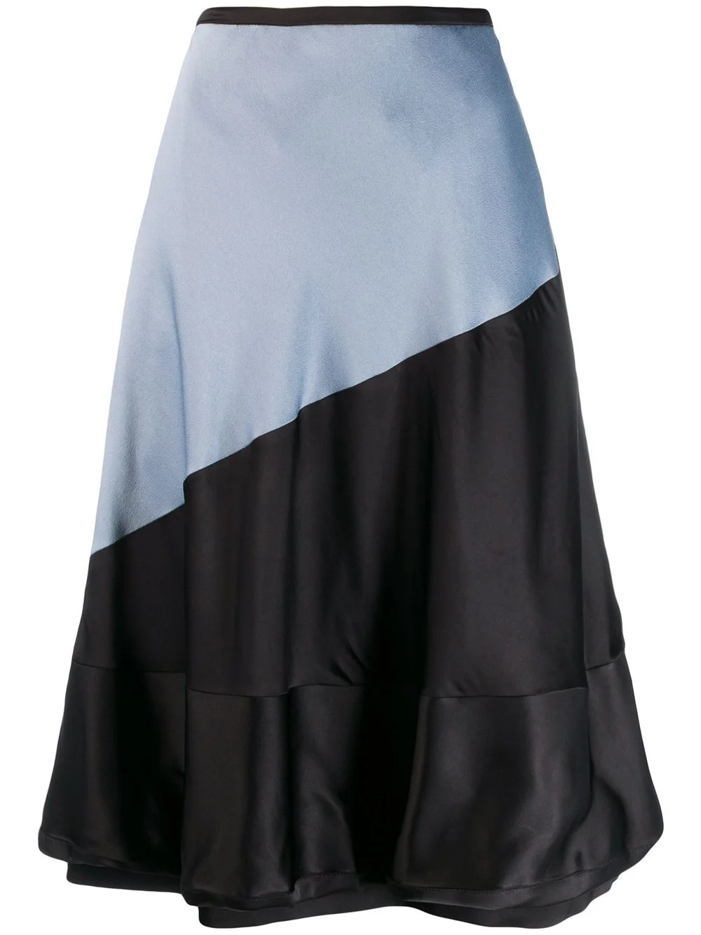colour-block balloon skirt The Spanish fashion house Loewe continues to bring a fresh and contemporary approach to every piece focusing on unconventional designs, as showcased with this light blue, dark grey and black colour-block balloon skirt. Featuring a waistband, an a-line shape, side pockets and a ruffled hem. Made in Italy Composition Lining: Cotton 100% Outer: Viscose 100% SIZE & FIT Model measurements Height 5 ft 9 in(1.74 m) Bust/Chest 32.67 in(83 cm) Hips 35.43 in(90 cm) Waist 23.62 in(60 cm) FittingInformation This piece fits true to size. We recommend you get your regular size Designed for a loose fit with a close fit at the waist Made with a mid-weight non-stretch fabric Washing instructions Dry Clean Only
