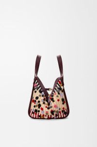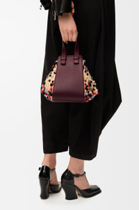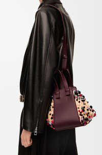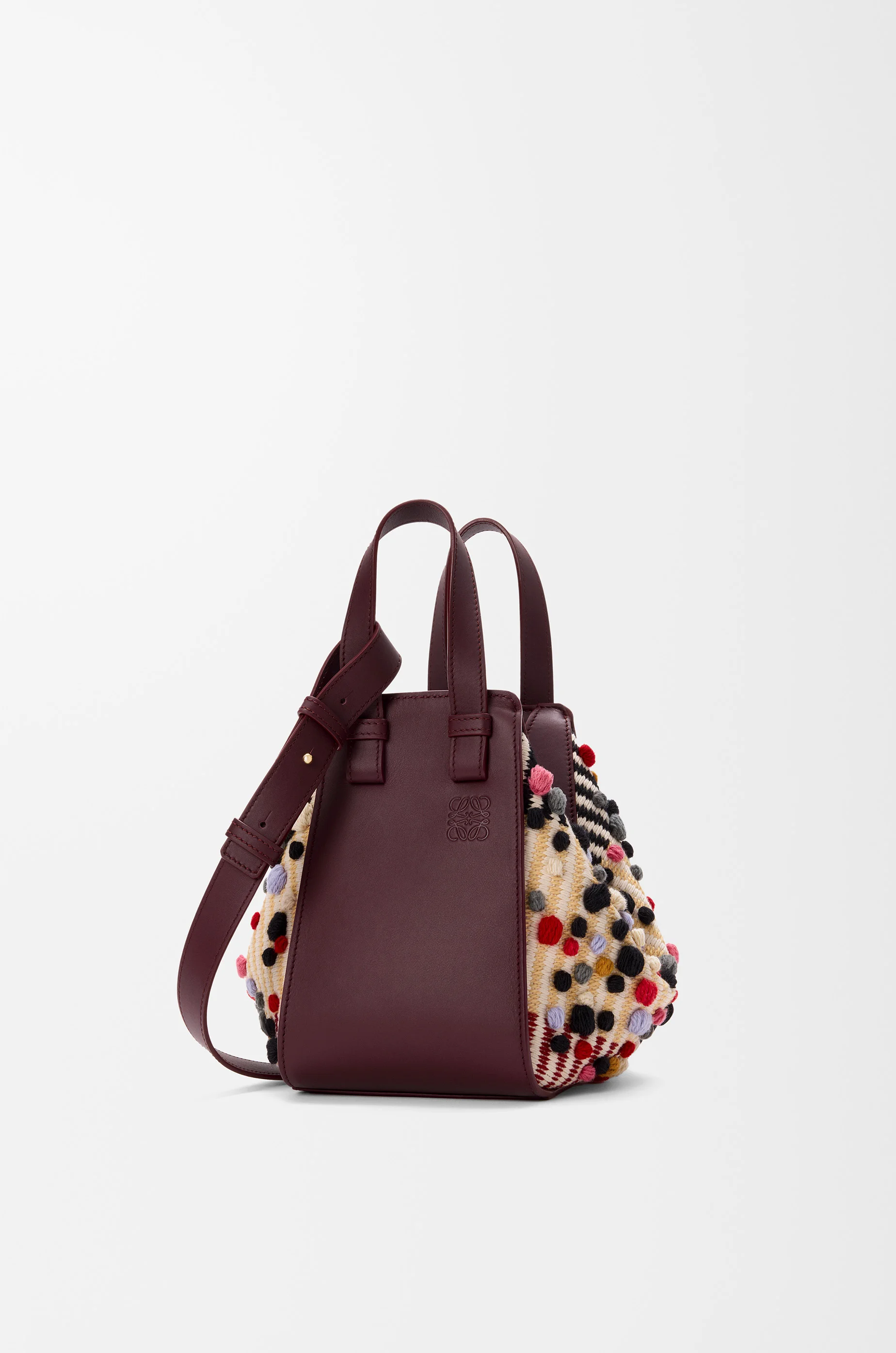 The Hammock is a versatile design whose flexible sides fold in and out to create distinctive silhouettes. This compact version is crafted in cotton based jacquard hand-embroidered with 3D wool dots inspired by Anni Albers's "Dotted" tapestry. This bag is part of the LOEWE x Albers collection. - Shoulder, crossbody or hand carry - Detachable and adjustable strap - Internal hook closure - One external zip pocket, two internal slip pockets - Nappa lambskin lining - Embossed Anagram, gold embossed LOEWE and Anni Albers signature Colour: Natural/Multicolor Metallic colour: Gold Main material: Embroidered Dots On Wool Textile Strap length: 78 - 85 cm Strap drop: 47 - 50 cm Handle drop: 10 cm Weight: 0.45 kg Height: 20.8 cm Width: 14.4 cm Depth: 19.5 cm Made in: Spain