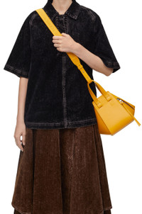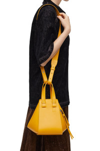 The Hammock is a multifunctional bag with supple side panels that release to change its shape. Looped straps allow the bag to be worn in multiple ways. This version is crafted in satin calfskin. - Shoulder, crossbody or top handle carry - Detachable and adjustable Jacquard tonal strap - Interior hook closure - External zip pocket and two internal slip pockets - Customisable with strap and personalised charms - Herringbone cotton canvas lining - Embossed Anagram Details - Colour: Sunflower - Metallic colour: Palladium - Main material: Satin Calf - Strap length: 95 - 103 cm - Handle drop: 10 cm - Weight: 0.52 kg - Height (cm): 20.8 - Width (cm): 14.4 - Depth (cm): 19.5 - Height (inch): 8.2 - Width (inch): 5.7 - Depth (inch): 7.7 - Model ID: A538H13X26 - CIL: 0010976603 - Made in: Spain