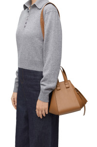 The Hammock is a multifunctional bag with supple side panels that release to change its shape. Looped straps allow the bag to be worn in multiple ways. This version is crafted in satin calfskin. - Shoulder, crossbody or top handle carry - Detachable and adjustable Jacquard tonal strap - Interior hook closure - External zip pocket and two internal slip pockets - Customisable with strap and personalised charms - Herringbone cotton canvas lining - Embossed Anagram Details - Colour: Oak - Metallic colour: Gold - Main material: Satin Calf - Strap length: 95 - 103 cm - Handle drop: 10 cm - Weight: 0.52 kg - Height (cm): 20.8 - Width (cm): 14.4 - Depth (cm): 19.5 - Height (inch): 8.2 - Width (inch): 5.7 - Depth (inch): 7.7 - Model ID: A538H13X26 - CIL: 0010976595 - Made in: Spain
