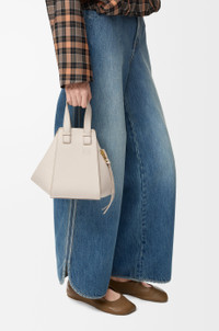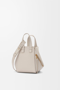 The Hammock is a versatile design whose flexible sides fold in and out to create distinctive silhouettes. This compact version is crafted in soft grained calfskin. - Shoulder, crossbody or hand carry - Detachable and adjustable strap - Internal hook closure - One external zip pocket, two internal slip pockets - Herringbone cotton canvas lining - Embossed Anagram Colour: Light Ghost Metallic colour: Gold Main material: Soft Grained Calf Strap length: 78 - 85 cm Strap drop: 47 - 50 cm Handle drop: 10 cm Weight: 0.56 kg Height: 20.8 cm Width: 14.4 cm Depth: 19.5 cm Made in: Spain