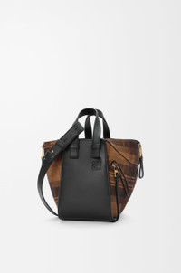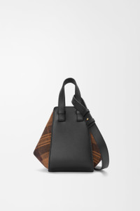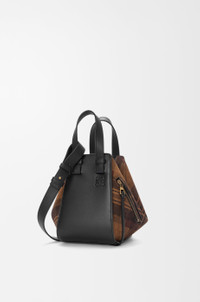 The Hammock is a versatile design whose flexible sides fold in and out to create distinctive silhouettes. This compact version is crafted in printed tartan suede and classic calfskin. - Shoulder, crossbody or hand carry - Detachable and adjustable strap - Internal hook closure - One external zip pocket, two internal slip pockets - Calfskin lining - Embossed Anagram Colour: Tan/Black Metallic colour: Gold Main material: Suede/Classic Calf Strap length: 78 - 85 cm Strap drop: 47 - 50 cm Handle drop: 10 cm Weight: 0.5435 kg Height: 20.8 cm Width: 14.4 cm Depth: 19.5 cm Made in: Spain