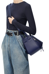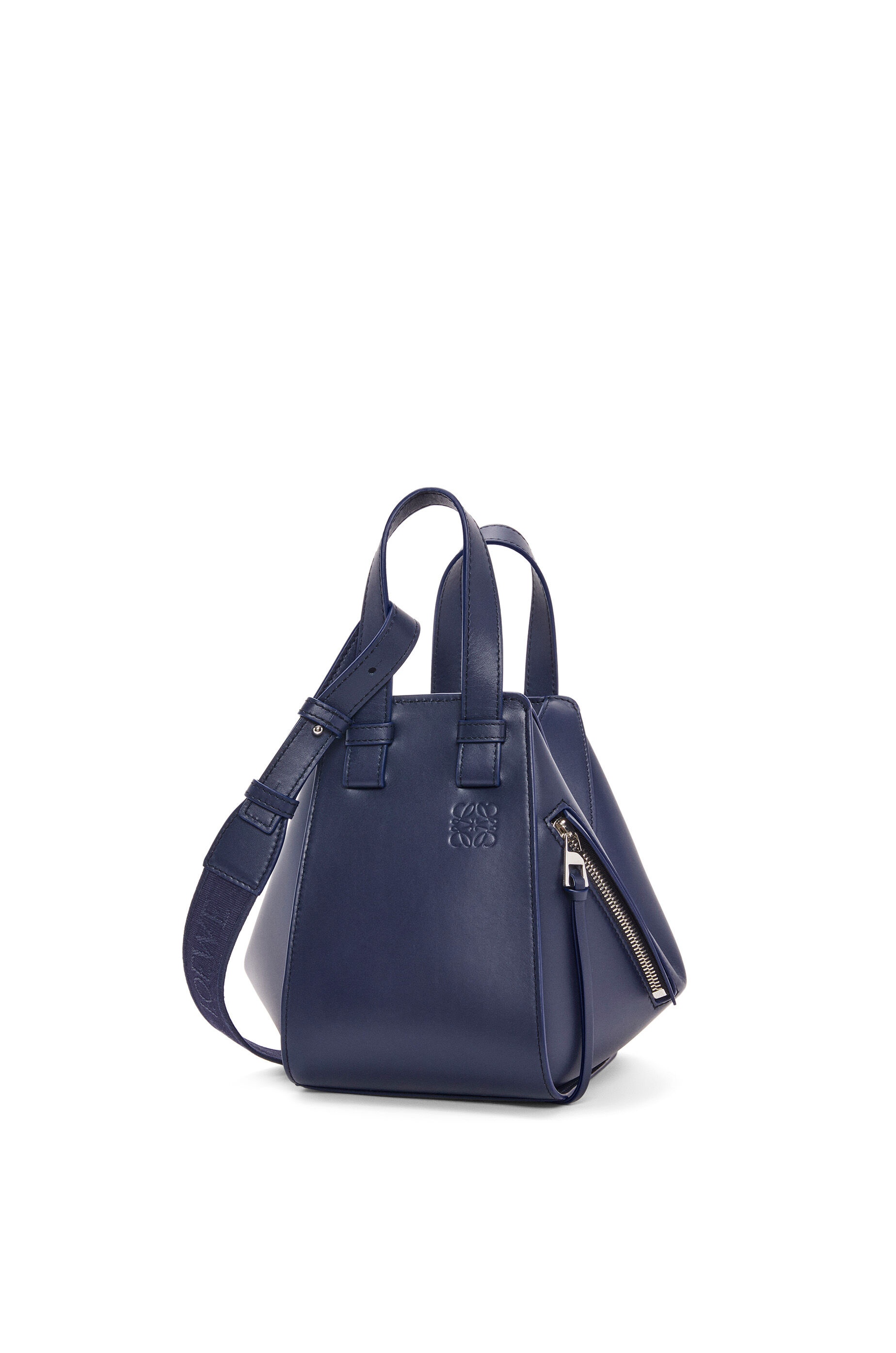 The Hammock is a multifunctional bag with supple side panels that release to change its shape. This compact version is crafted in satin calfskin. - Shoulder, crossbody or top handle carry - Detachable and adjustable jacquard tonal strap - Internal hook closure - External zip pocket - Two internal slip pockets - Herringbone cotton canvas lining - Embossed Anagram Details - Colour : Abyss Blue - Metallic colour : Palladium - Main material : Satin Calf - Strap length : 95 - 103 cm - Strap drop : 47 - 50 cm - Handle drop : 10 cm - Weight : 0.52 kg - Height (cm) : 20.8 - Width (cm) : 14.4 - Depth (cm) : 19.5 - Height (inch) : 8.2 - Width (inch) : 5.7 - Depth (inch) : 7.7 - Model ID : A538H13X26 - CIL : - 0011091436 - Made in : Spain