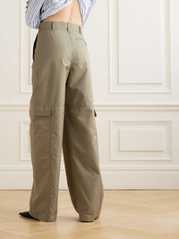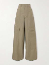 EDITORS'NOTES Loewe's cargo pants are cool yet still appear polished. Made from cotton-blend twill, they have a darted high-rise waist and straight legs featuring particularly long flap pockets - a recurring detail this season. Wear yours with anything from a collared shirt to a cropped sweater. SIZE & FIT Model measurements: - Fits true to size, take your normal size - High-rise, designed for a straight-leg fit - Lightweight, non-stretchy fabric - Model is 175cm/ 5'9" and is wearing a FR 36 - Bust: 78cm/ 30.7" - Waist: 62cm/ 24.4" - Hip: 83cm/ 32.7" DETAILS & CARE - Beige cotton-blend twill - Concealed hook and zip fastening at front - 54% cotton, 46% polyester - Hand wash or dry clean - Designer color: Laurel Green