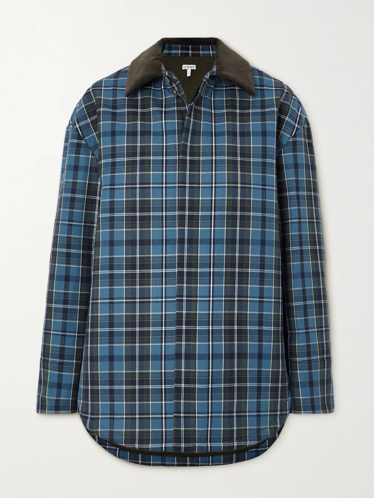 Loewe's jacket is designed to resemble men's overshirts. Made from a checked wool-blend that's lightly padded for subtle insulation, it has a cotton-corduroy collar and slightly loose shape with a curved hem. Wear it as a layering piece over a turtleneck sweater or denim shirt.