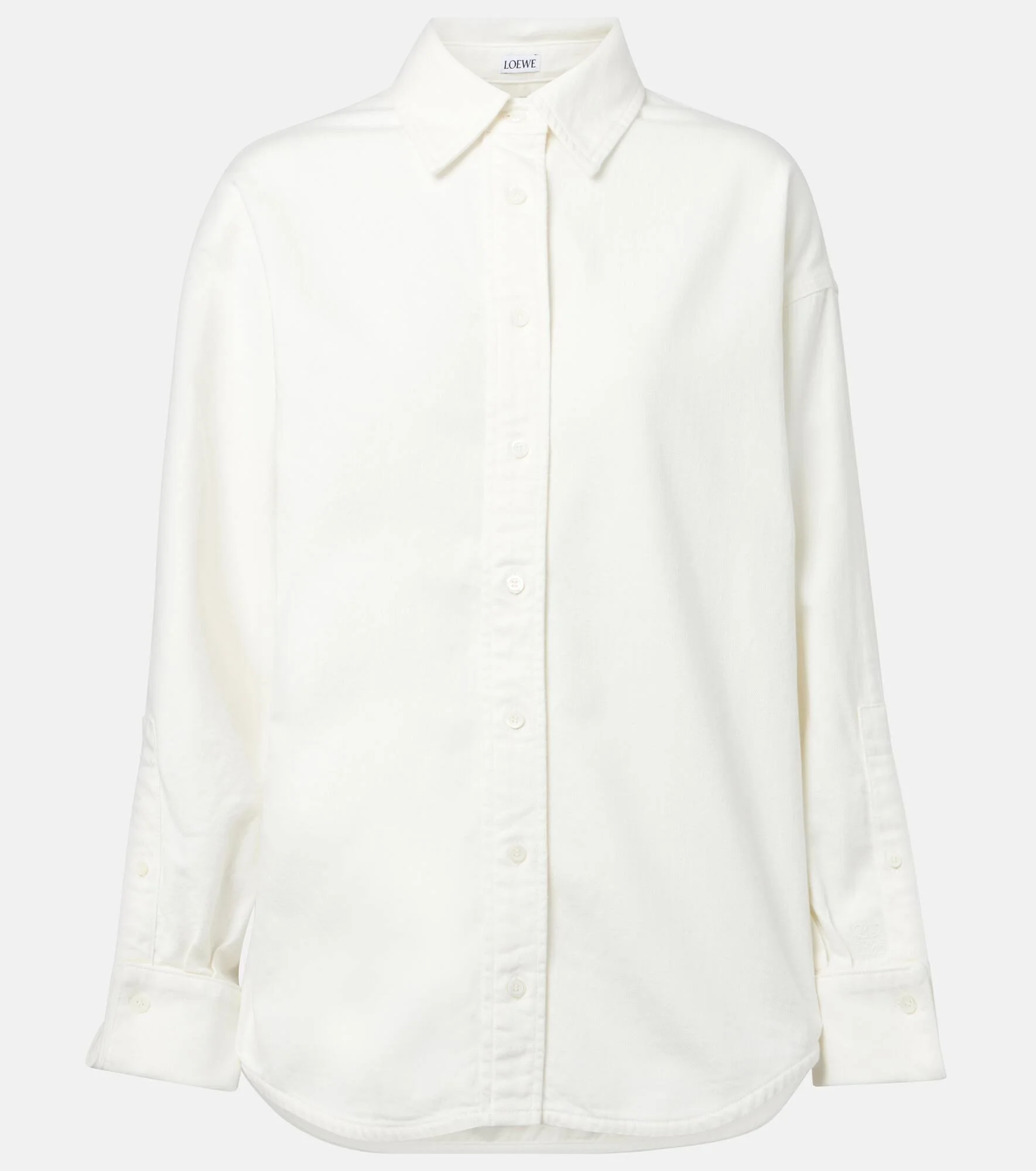 Crafted from heavyweight cotton, this shirt from Loewe is a staple for any sophisticated wardrobe. The timeless design features a classic collar, buttoned cuffs, and button-down front. Product Details - Material: 100% cotton - Care instructions: machine wash at 30 degrees - Made in Italy - Designer color name: White - Item color: white - Embroidery: 100% polyester - Contains non-textile parts of animal origin - Cuff: French square - Item number: P01066223 Size & Fit - True to size - Dropped shoulders - Designed for a loose fit - Slightly stretchy fabric - Falls below the hip - The model seen in the picture is 178cm-5'10" and wearing a size FR 36