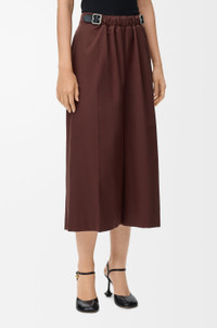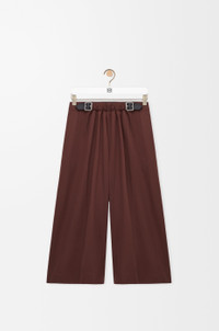 Trousers in lightweight cotton and silk twill featuring a gathered front with a leather belt detail. - Regular fit, cropped length - Mid waist, loose leg - Side zip fastening - Seam pockets, buttoned rear welt pocket - Pressed creases at the front - LOEWE embossed leather patch placed at the back Colour: Coffee Main material: Cotton/Silk Weight: 0.6 kg Made in: Italy Materials & care Main Material: 90% cotton 10% silk