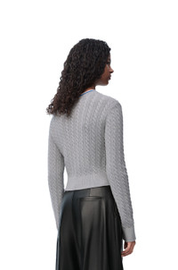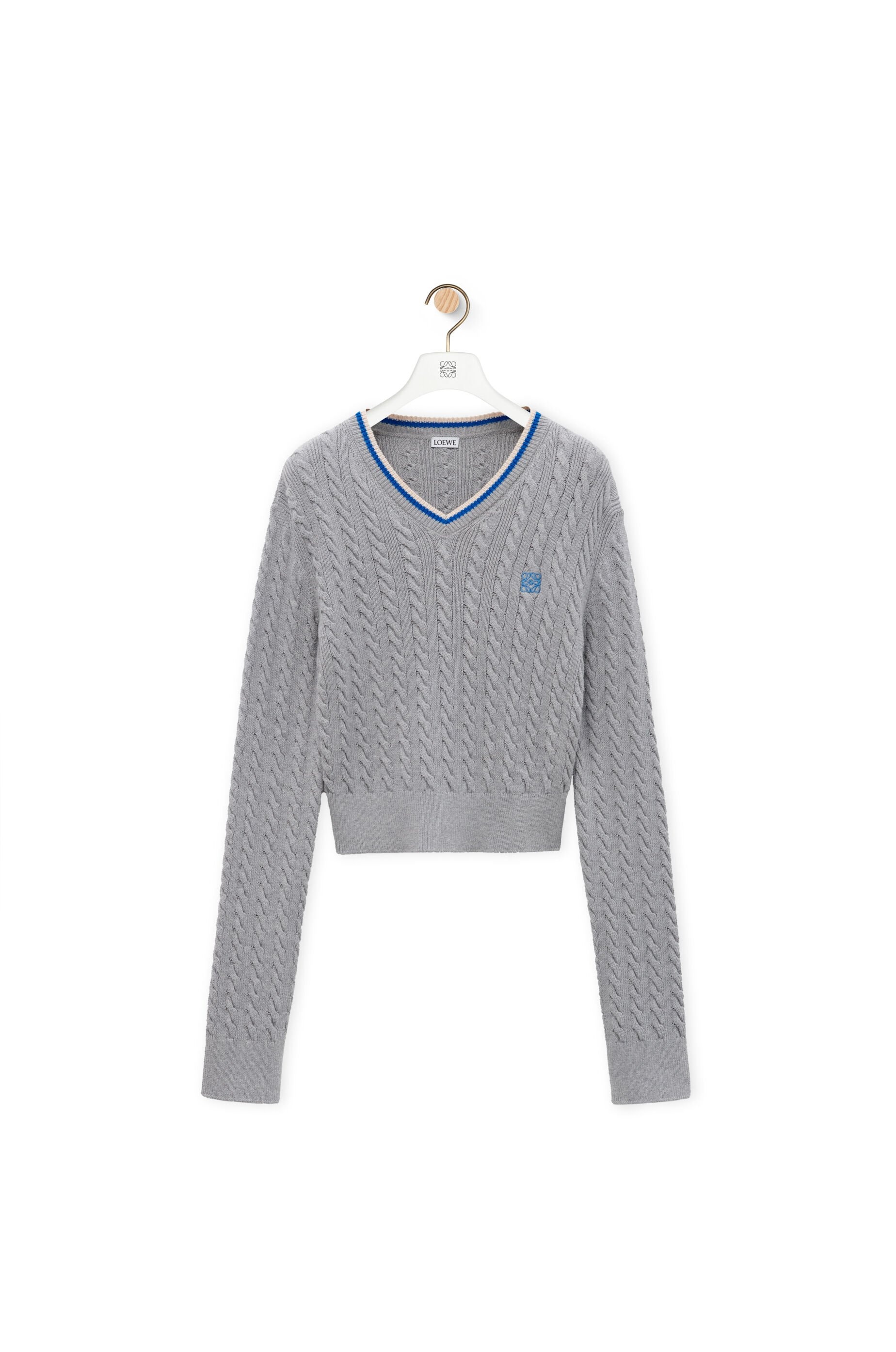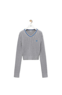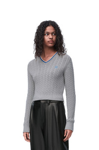 Sweater in lightweight cotton featuring a striped V-neck. - Slim fit, short length - Cable stitch - Ribbed collar, cuffs and hem - Contrast Anagram embroidery placed on the chest Details - Colour : Grey - Main material : Cotton - Weight : 0.42 kg - Model ID : S359Y14KGB - Made in : Italy