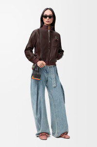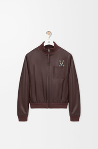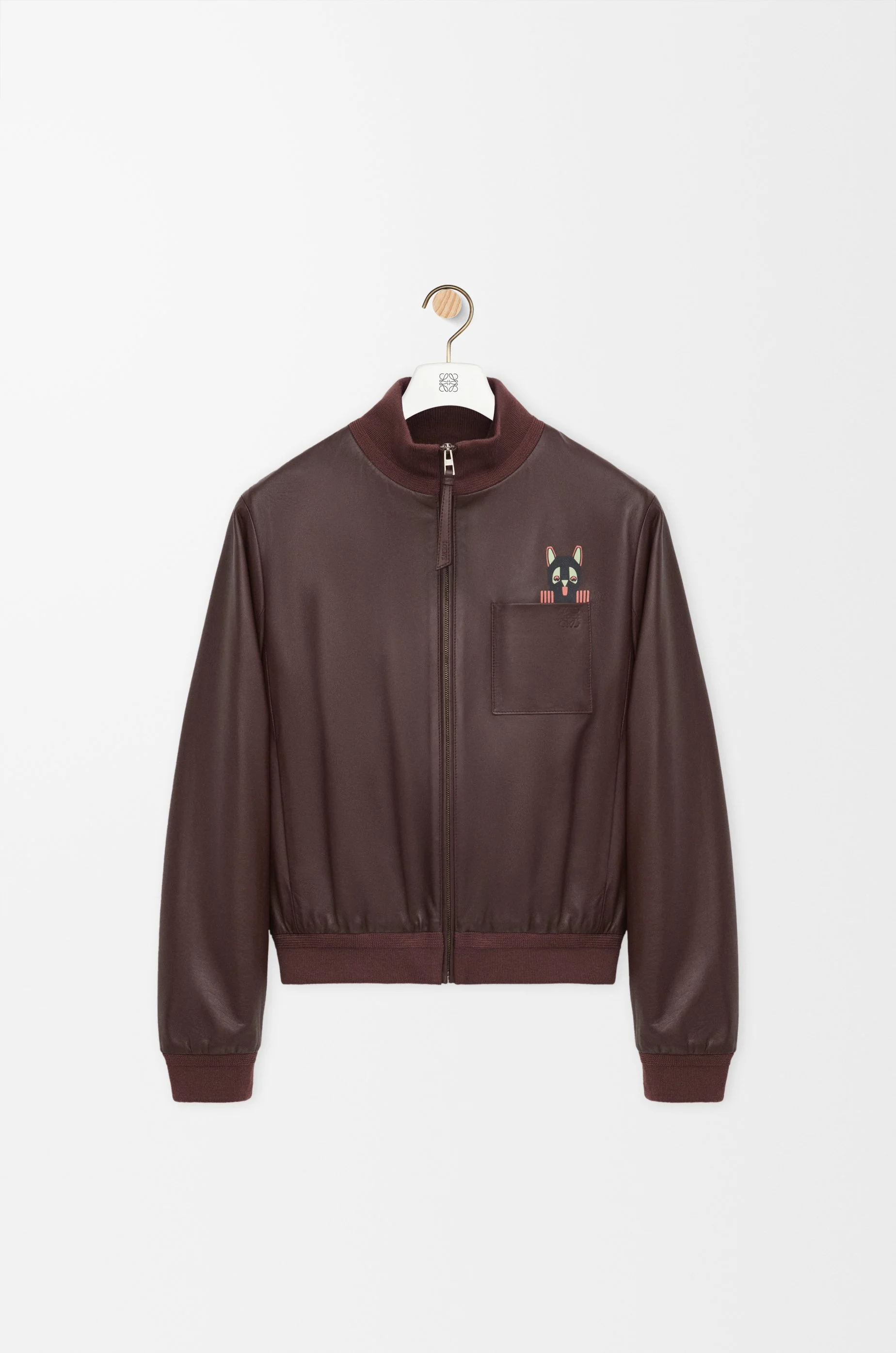 Jacket in lightweight nappa lambskin featuring a Futurist cat print on the chest. This jacket is inspired by Louis Wain's "Futurist Cats" porcelain vase series. - Small fit, short length - High neck - Ribbed collar, cuffs and hem - Zip front fastening with Puzzle puller - Seam pockets - Fully lined - Anagram embossed leather pocket placed on the chest Colour: Brown Main material: Nappa Weight: 0.64 kg Made in: Italy Materials & care Main Material: 100% lambskin