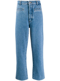 Under a creative direction, the Spanish fashion house Loewe continues to bring a fresh and contemporary approach to every piece focusing on unconventional and intricate details. These cropped jeans are crafted from blue cotton and feature a high rise, a waistband with belt loops, a front button fastening, front welt pockets, side slit pockets, rear pockets, a straight leg and a cropped length. Made in Italy Composition Outer: Cotton 100%Lining: Cotton 100%