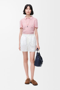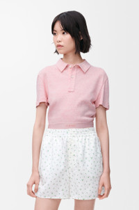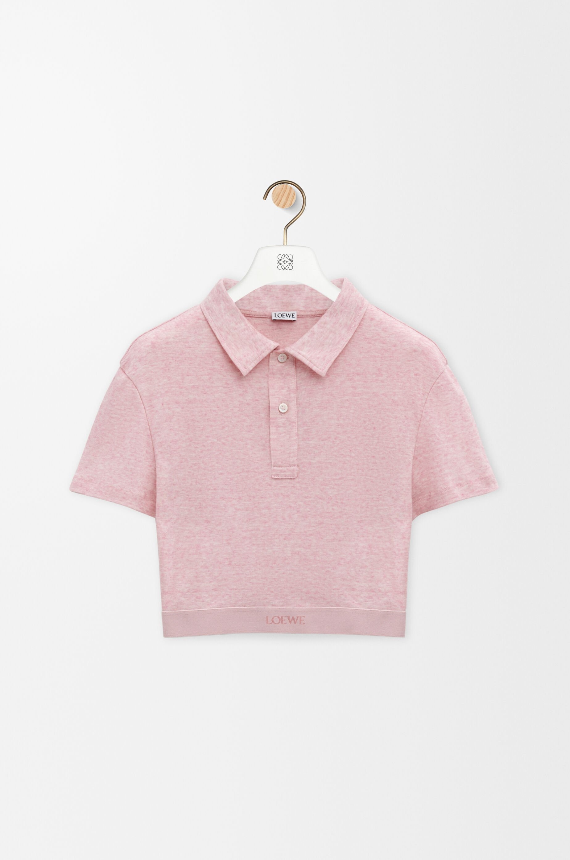 Polo in lightweight cotton and wool featuring an elasticated LOEWE jacquard waistband. - Regular fit, cropped length - Polo collar Details - Colour : Pink - Main material : Cotton/Wool - Weight : 0.2 kg - Model ID : S359Y23XAC - Made in : Portugal