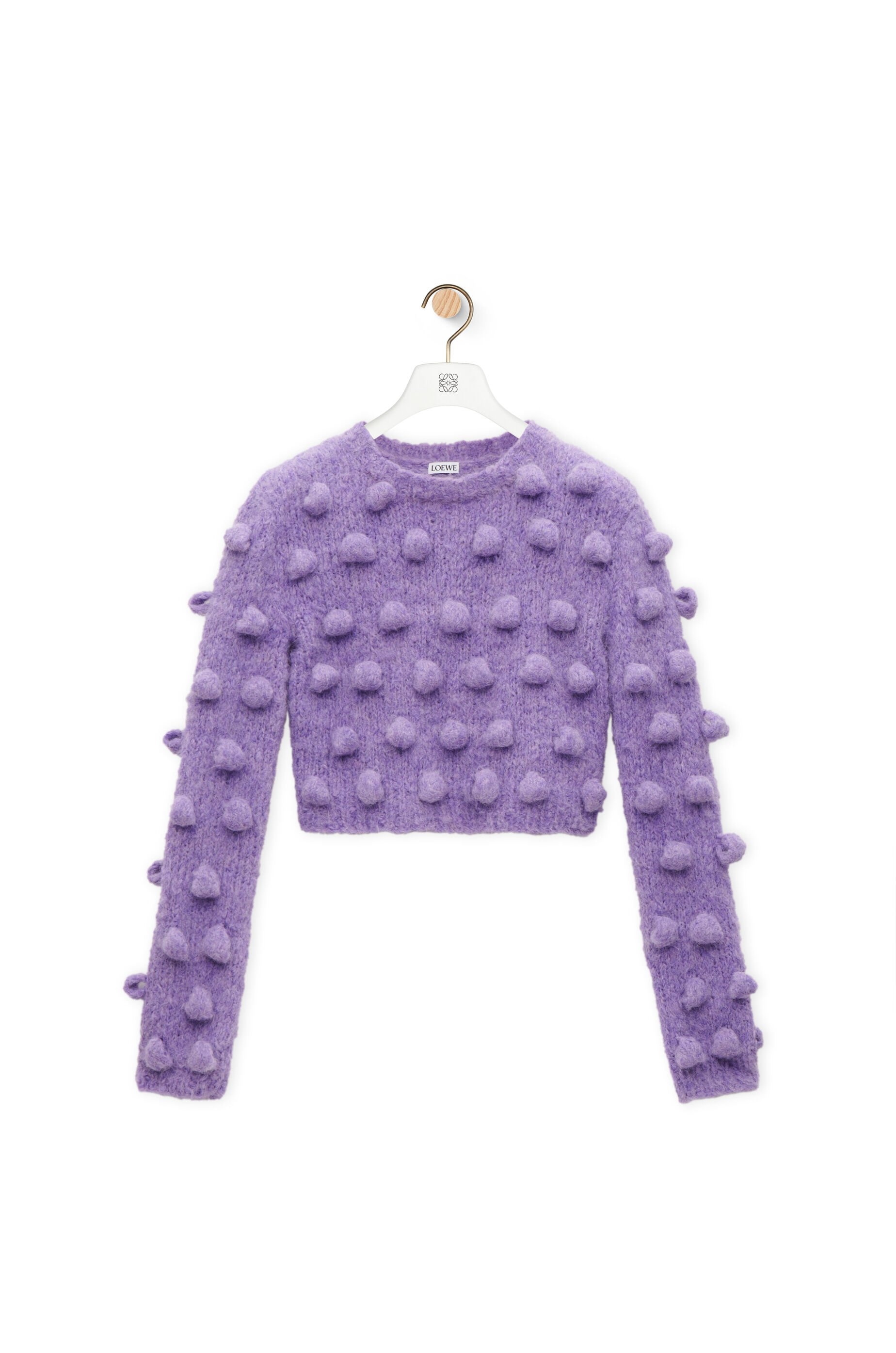 Sweater crafted in medium-weight alpaca blend knit. - Hand knitted - Small fit - Cropped length - Allover bubble details - Round neck - Ribbed collar, cuffs and hem - Anagram engraved charm placed at the back Details - Colour : Purple - Main material : Acrylic/Alpaca/Wool - Weight : 0.2 kg - Model ID : S359Y14KF9 - Made in : Republic of Macedonia