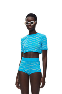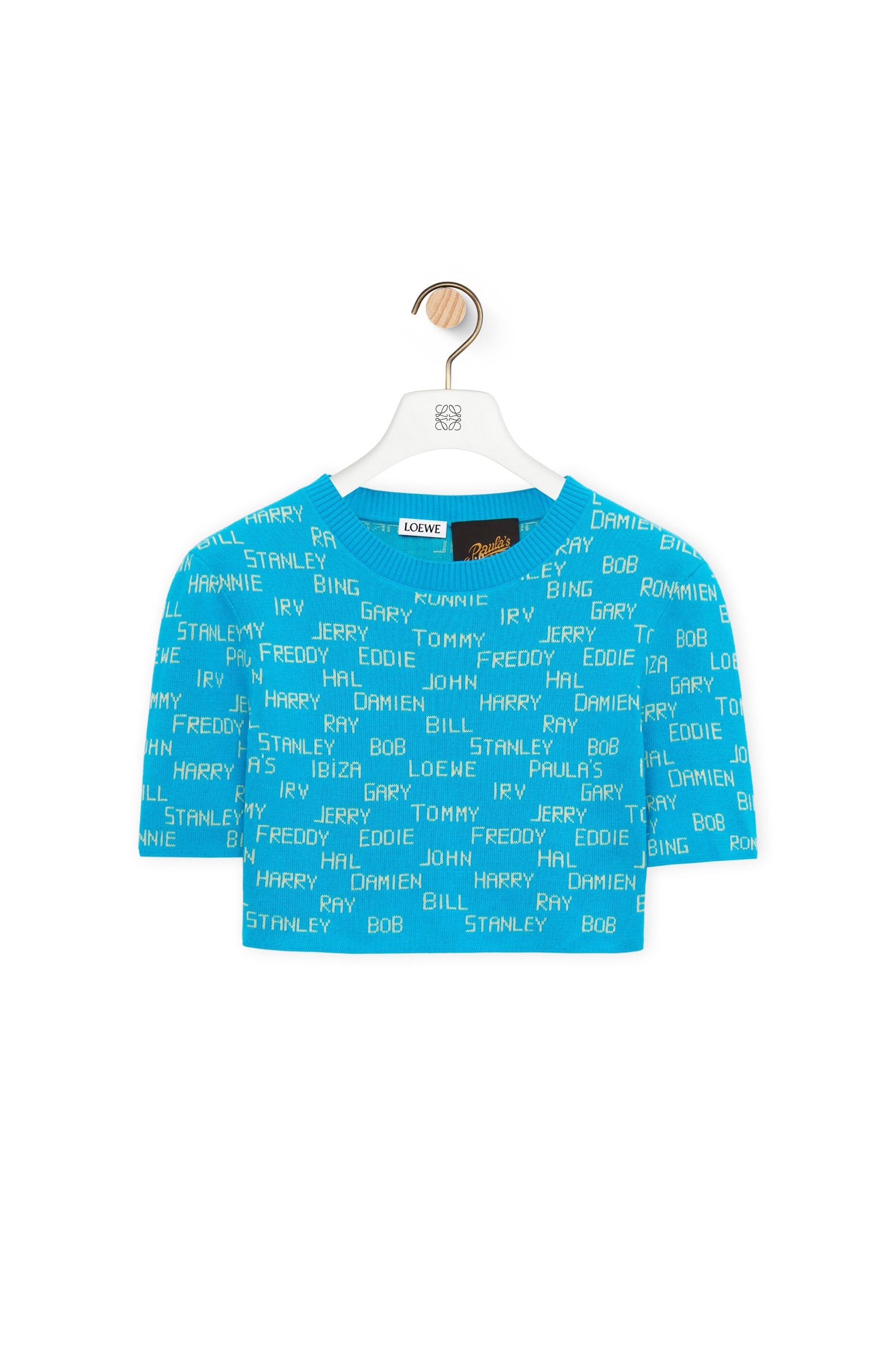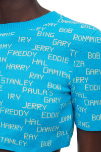 Sweater crafted in medium-weight cotton jacquard knit. - Jacquard stitch - Slim fit - Cropped length - Allover name pattern - Round neck - Ribbed collar - Self-start cuffs and hem Details - Colour: Turquoise/Ecru - Main material: Coton - Weight: 0.1 kg - Model ID: S616Y14K72 - Made in: Italy