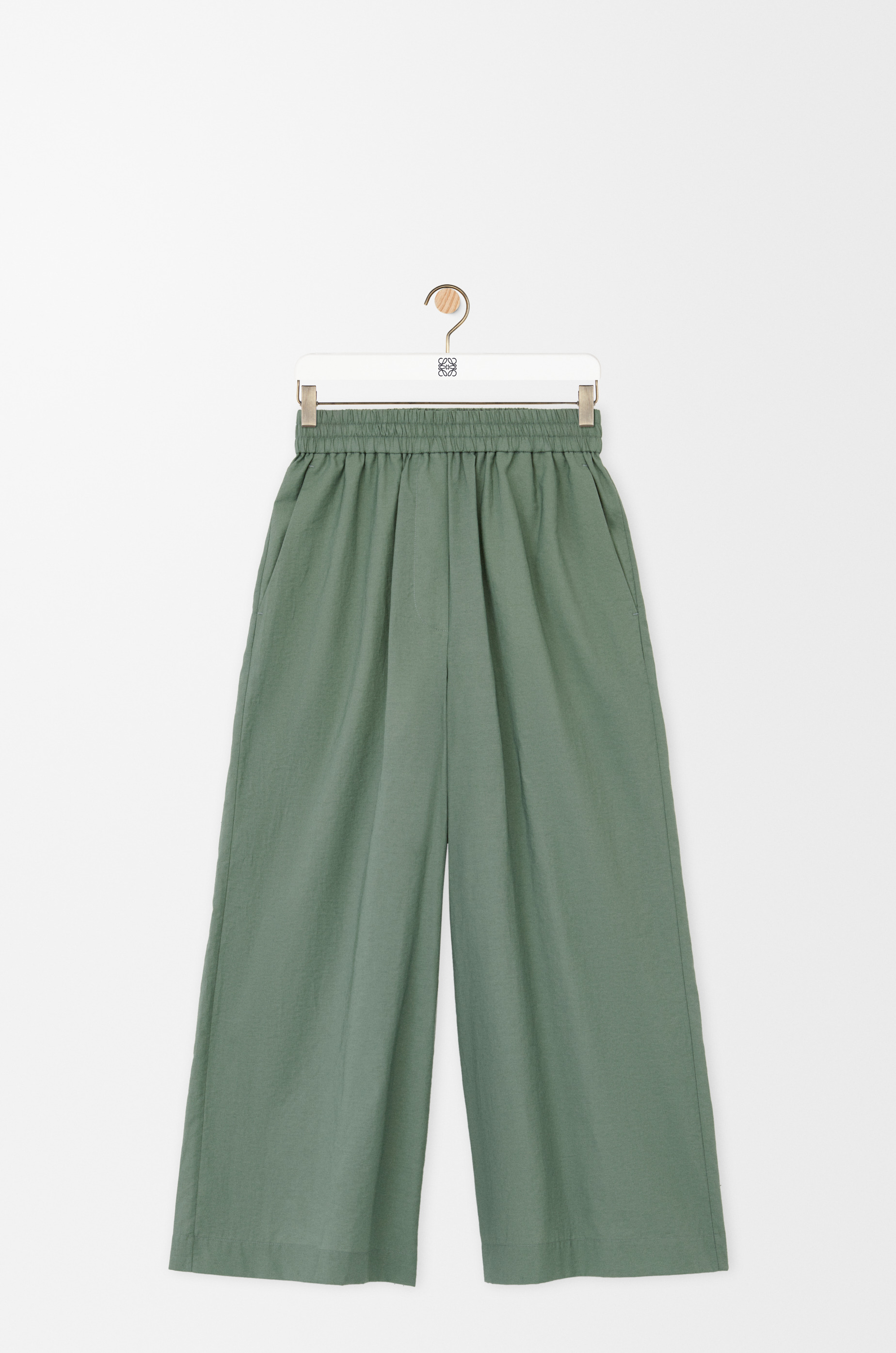 Trousers in lightweight textured cotton blend poplin featuring an Anagram crafty embroidery placed on the rear patch pocket. - Relaxed fit, cropped length - Mid waist, wide leg - Elasticated waist - Slash pockets Colour: Sage Main material: Cotton/Polyamide Weight: 0.3 kg Made in: Italy