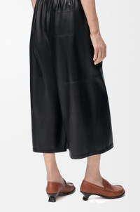 Trousers in lightweight satin nappa lambskin with an ultra-soft glove touch. - Relaxed fit, cropped length - Mid waist, loose leg - Elasticated waist - Slash pockets, rear patch pocket - Anagram embossed patch placed at the waist Details - Colour : Black - Main material : Nappa - Weight : 0.7 kg - Model ID : S359Y54L63 - Made in : Spain