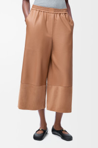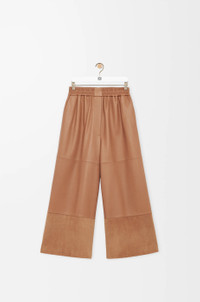 Trousers crafted in lightweight satin nappa lambskin with an ultra-soft glove touch and suede goatskin. - Relaxed fit - Cropped length - Mid waist - Wide leg - Elasticated waist - Slash pockets - Rear patch pocket - Tonal suede cuffs - Anagram embossed patch placed at the waist Details - Colour : Toffee - Main material : Nappa/Suede - Weight : 0.5 kg - Model ID : S359Y54L56 - Made in : Spain