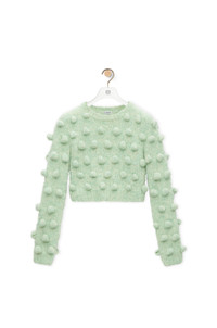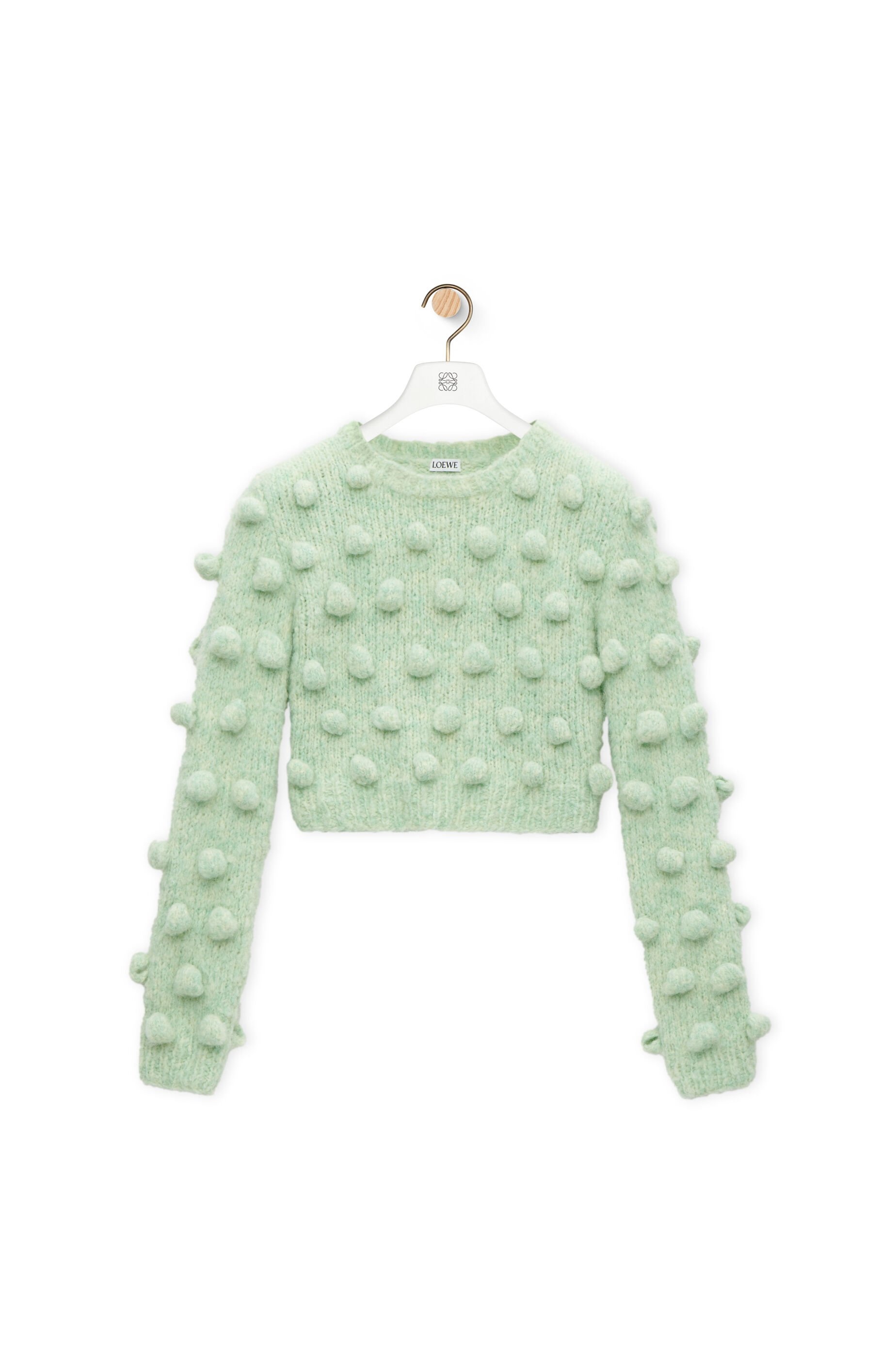 Sweater crafted in medium-weight alpaca blend knit. - Hand knitted - Small fit - Cropped length - Allover bubble details - Round neck - Ribbed collar, cuffs and hem - Anagram engraved charm placed at the back Details - Colour : Mint - Main material : Acrylic/Alpaca/Wool - Weight : 0.2 kg - Model ID : S359Y14KF9 - Made in : Republic of Macedonia