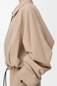 Jacket in lightweight cotton twill featuring a balloon silhouette with an adjustable leather drawstring hem. - Relaxed fit, regular length - Classic collar - Zip front fastening with a leather puller and placket - Raglan sleeves - Full check lining - LOEWE Anagram embossed leather patch placed at the back Details - Colour : Beige - Main material : Cotton - Weight : 0.9 kg - Model ID : S359Y02XDH - Made in : Italy