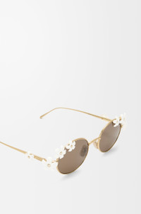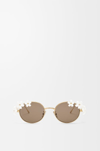 Oval-shaped sunglasses in a light metal construction with daisy embellishments. - Universal fit - UVA/UVB protection - Engraved LOEWE Colour: White Main material: Metal Weight: 0.035 kg Made in: Italy