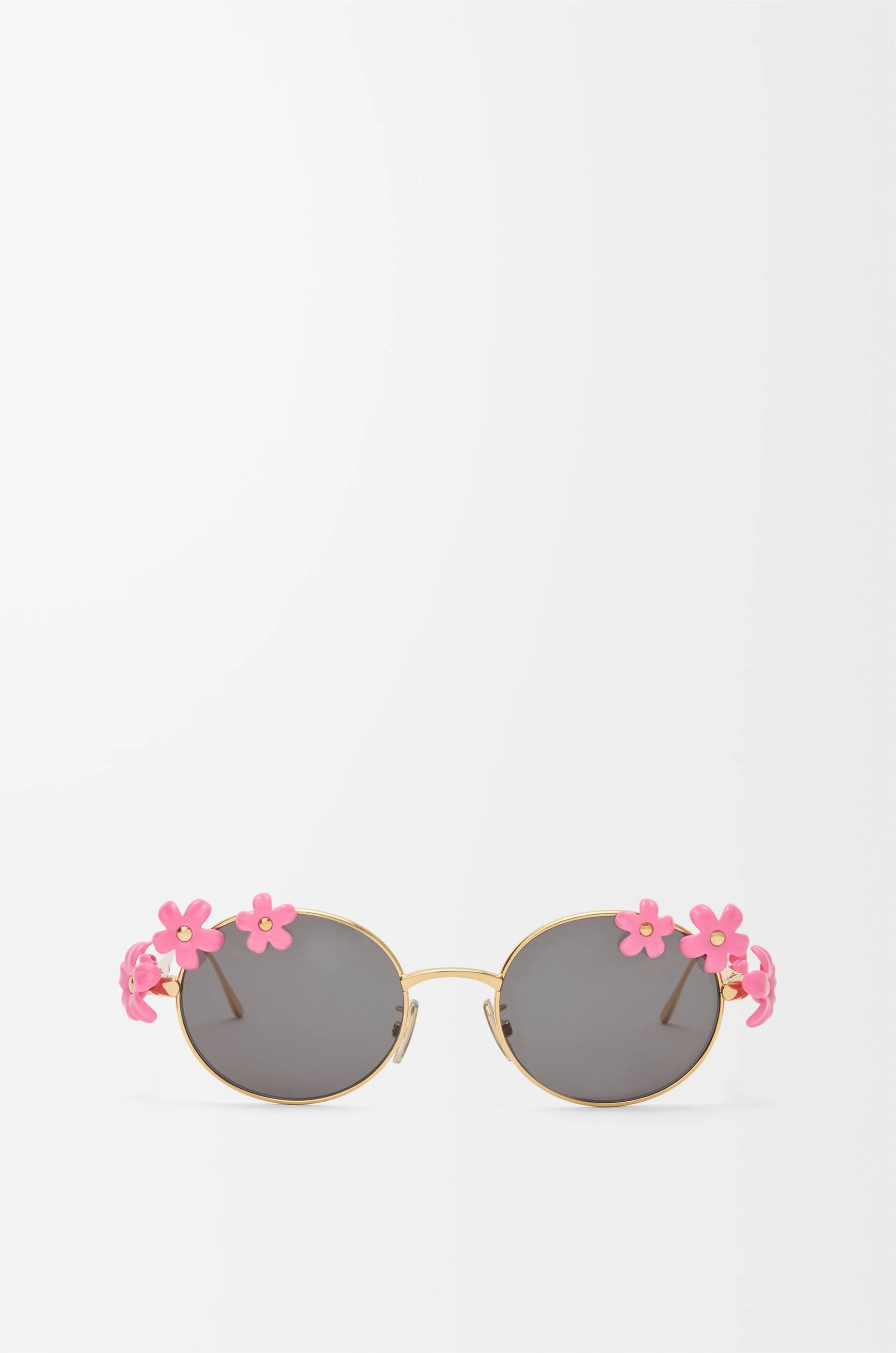 Oval-shaped sunglasses in a light metal construction with daisy embellishments. - Universal fit - UVA/UVB protection - Engraved LOEWE Colour: Pink Main material: Metal Weight: 0.035 kg Made in: Italy