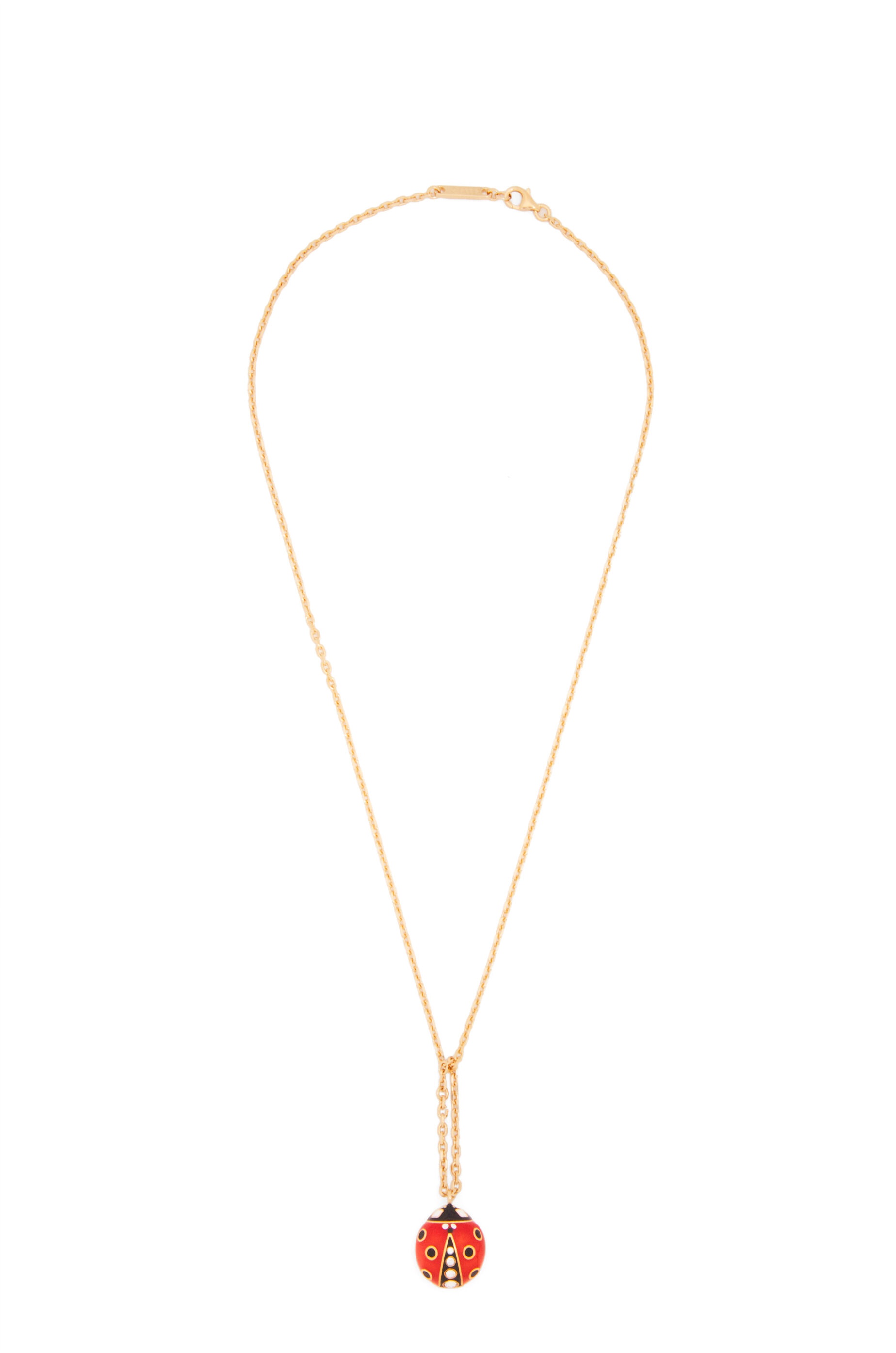 Dangling necklace in sterling silver with a gold finish featuring a ladybug pendant embellished with enamel and crystals Details - Colour : Gold/Red - Metallic colour : Gold - Main material : Sterling Silver/Enamel/Crystal - Weight : 0.018 kg - Model ID : JJ16241X02 - CIL : - 0011169125 - Made in : Italy